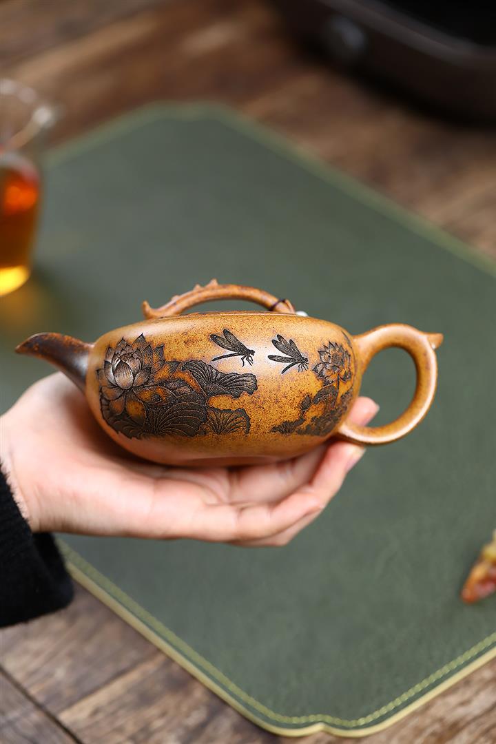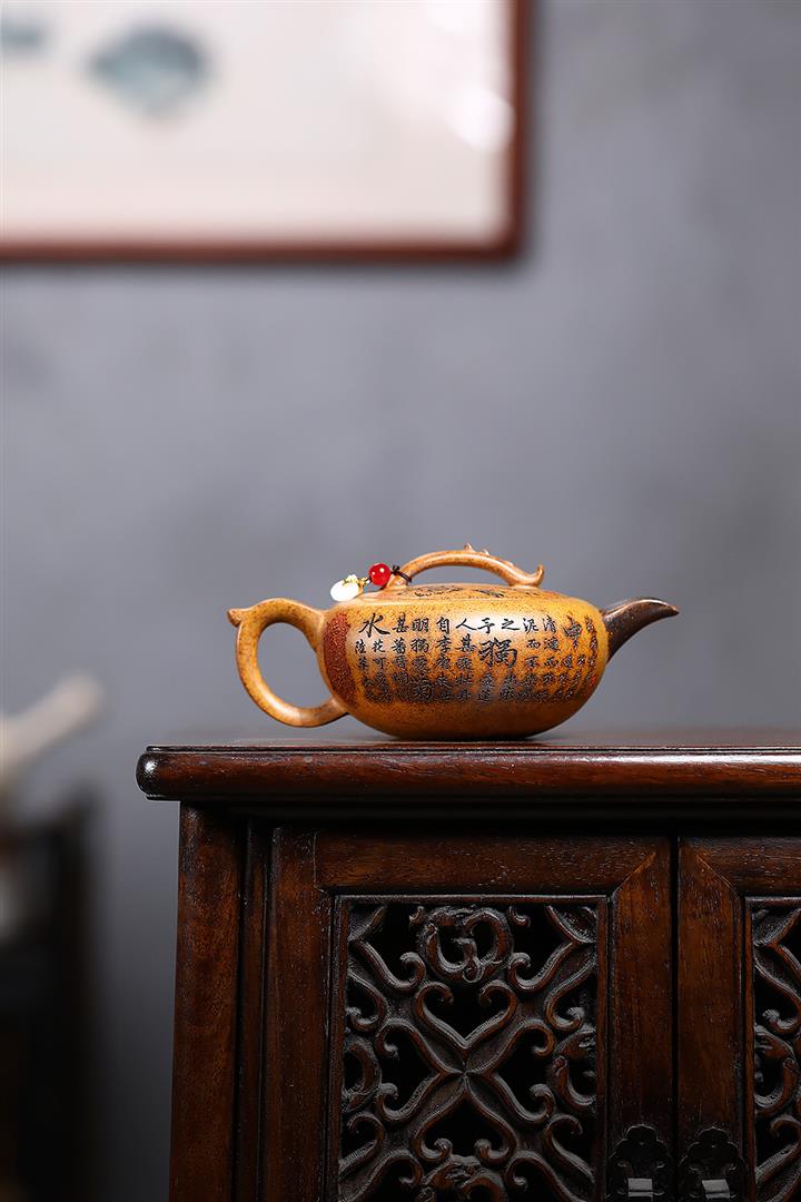 【作品介紹】此款壺形線條流暢,壺把,壺嘴,壺身壹氣呵成栩栩如生,是收藏把玩的好壺,泥料色澤古樸典雅,日久使用,漸露鋒芒,養成變化快,溫潤莊重,用其泡茶,使用的年代久,壺身就溫潤,泡出來的茶湯也就醇郁芳馨。