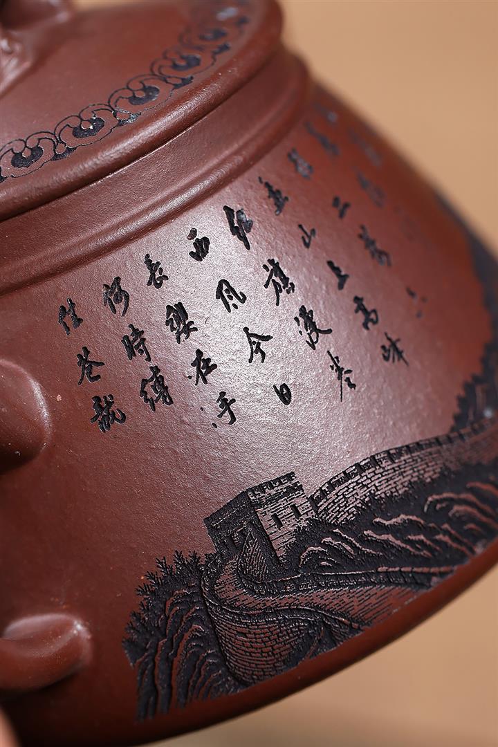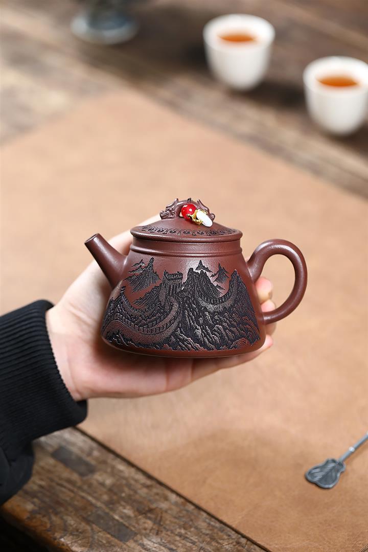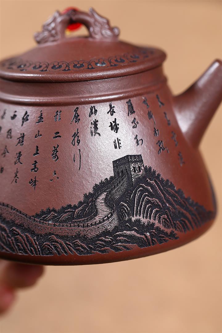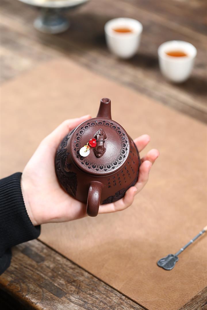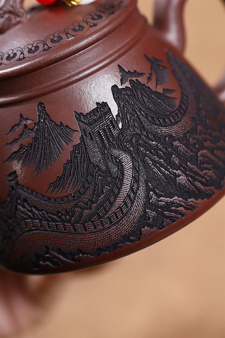 原礦龍骨金砂手工滿刻秦權茶壺POT7109