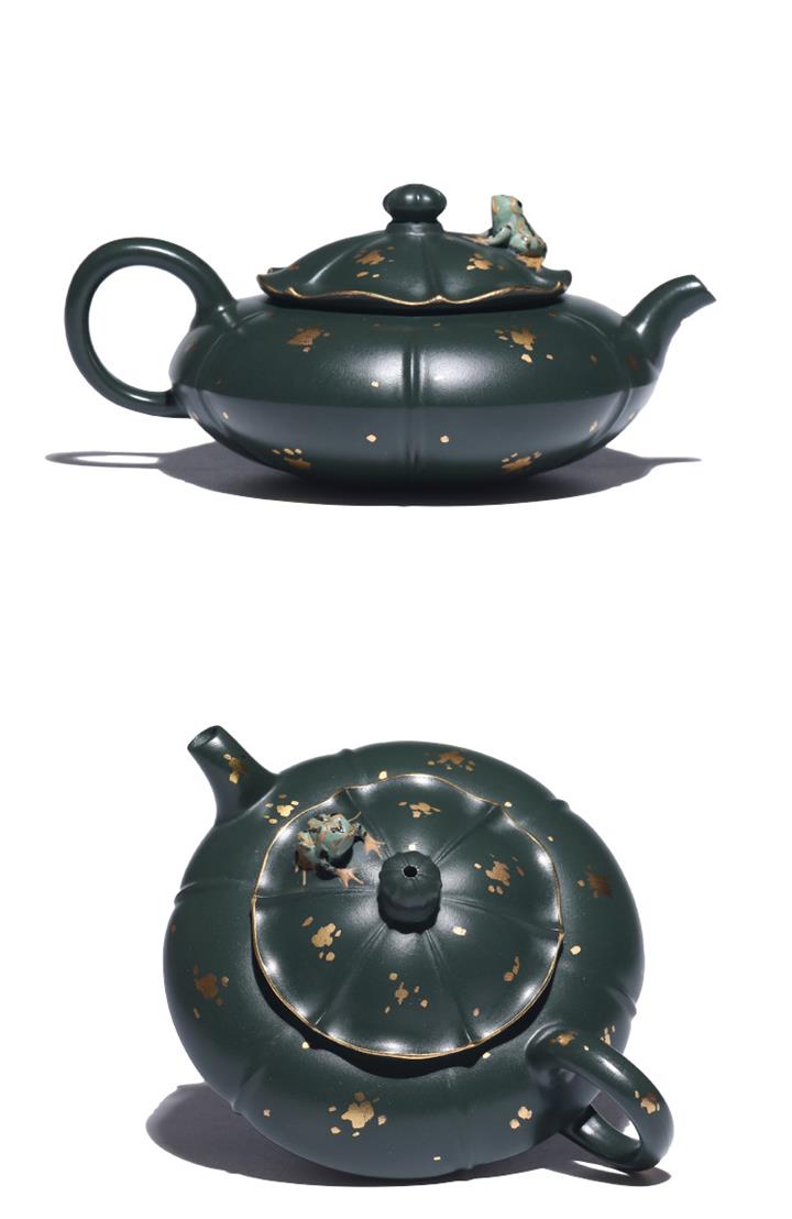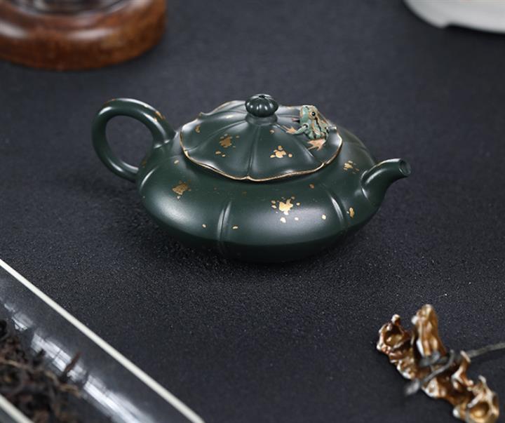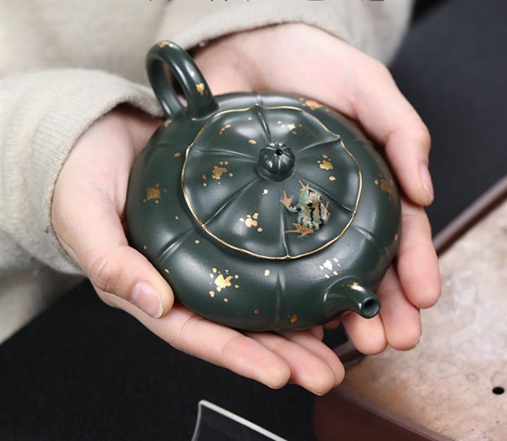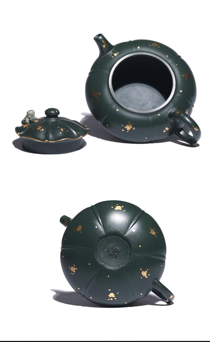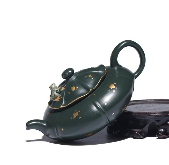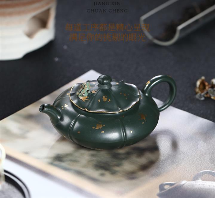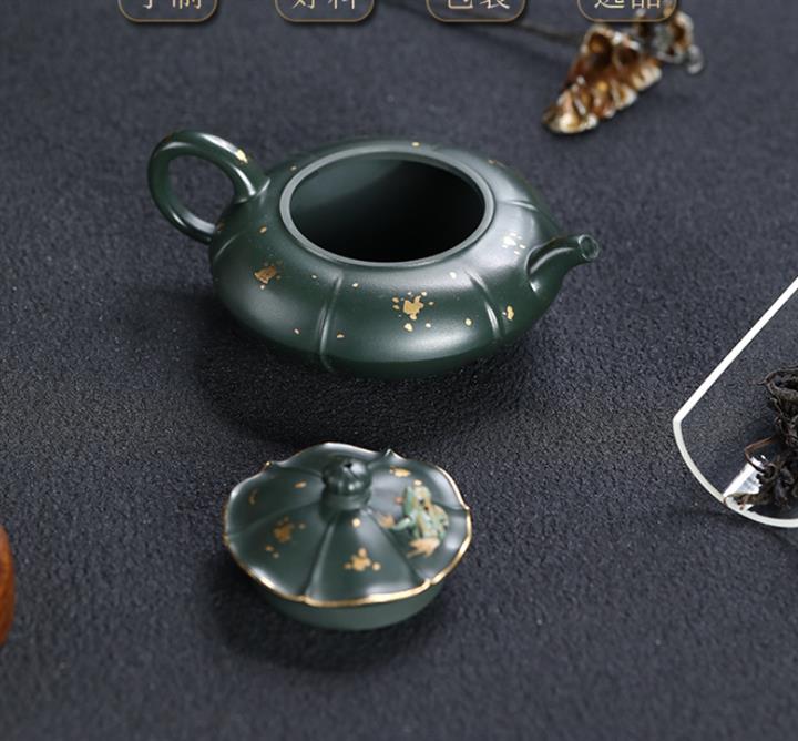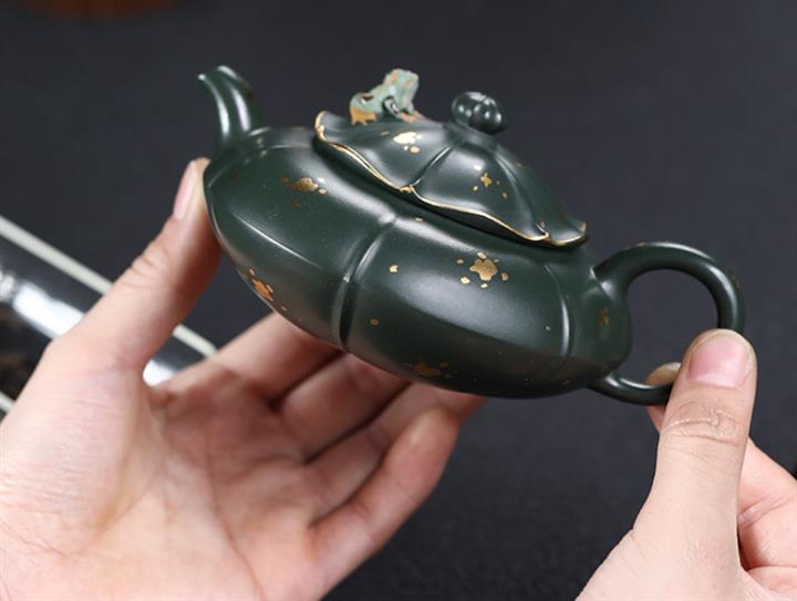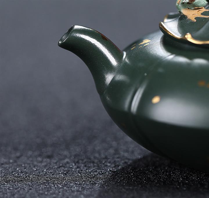 205cc原礦翡翠綠泥合歡金蓮茶壺POT9333
