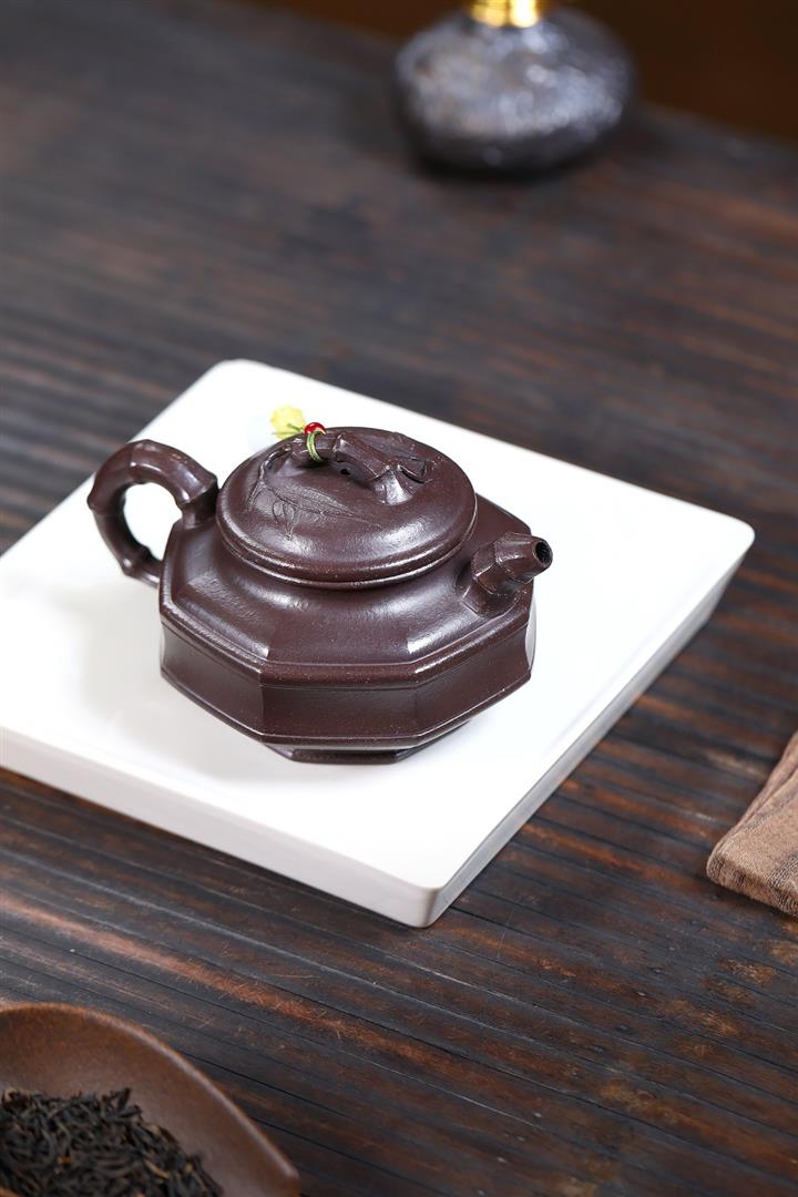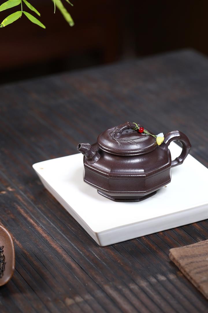 原礦老紫泥清風竹影方壺POT6549