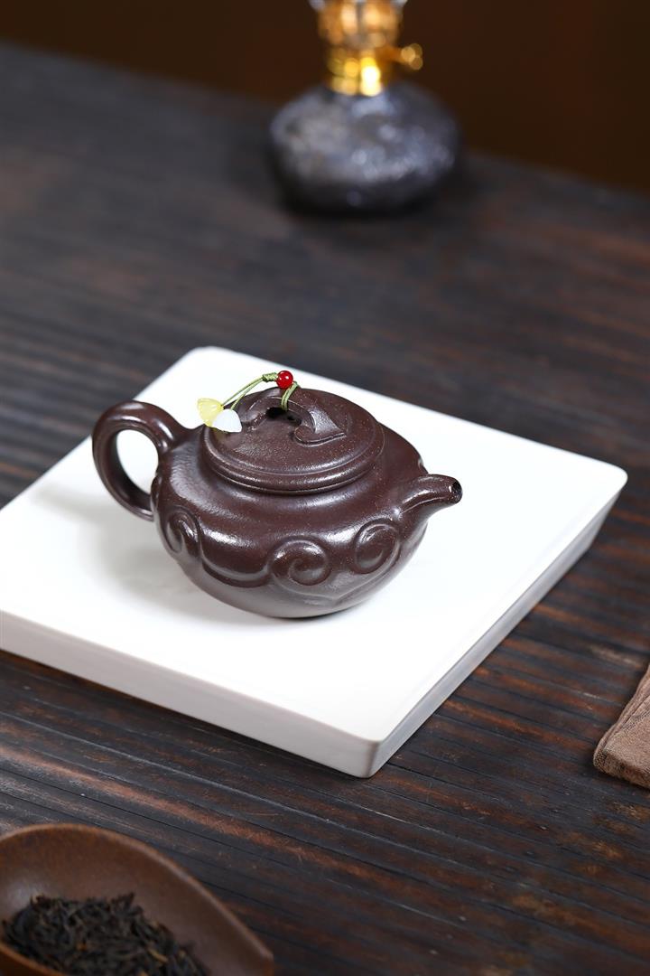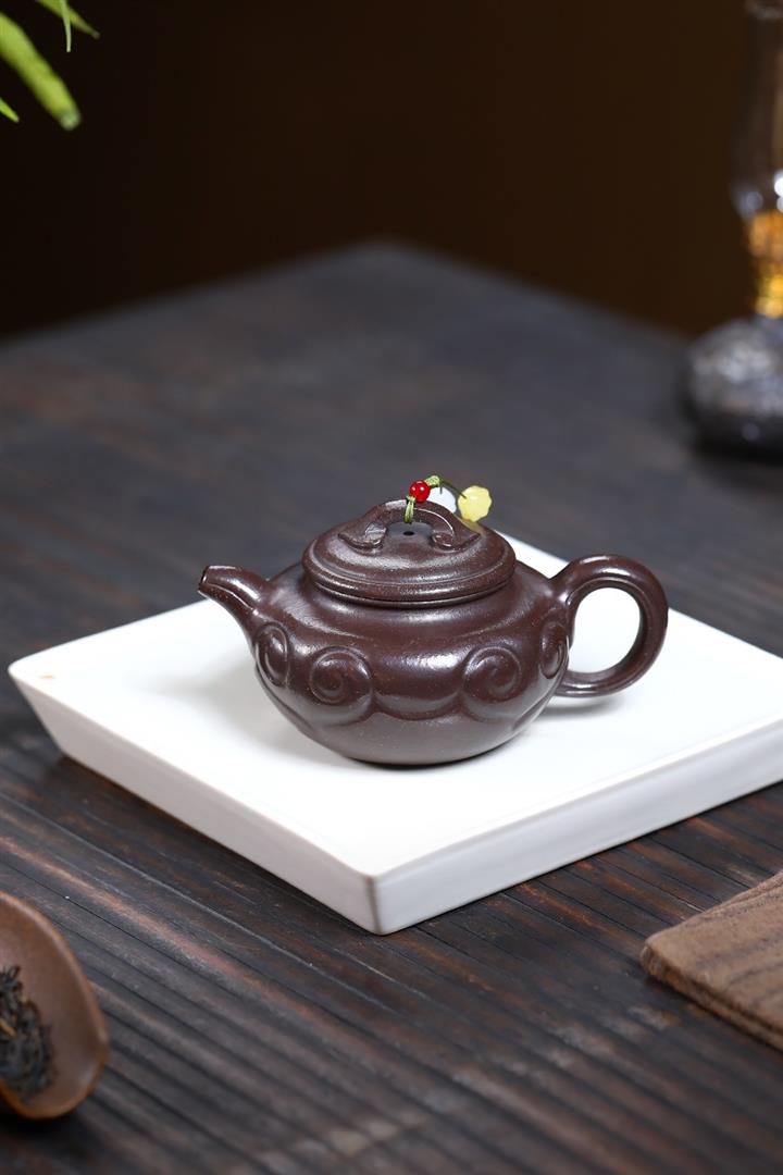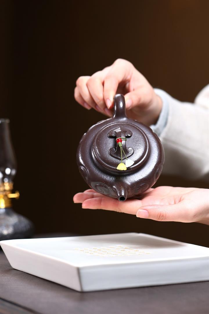 【泥料特點】砂土氣重,似淳實農民,日久使用,漸露鋒芒,養成變化,溫潤莊重。紫砂是壹種雙重氣孔結構的多孔性材質,氣孔微細,密度高。用紫砂壺沏茶,不失原味,且香不渙散,得茶之真香真味。紫砂使用越久,壺身色澤越發光亮照人,氣韻溫雅。紫砂壺長久使用器身會因撫摸擦拭,變得越發溫潤光澤。