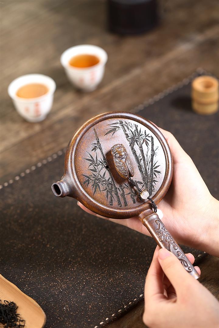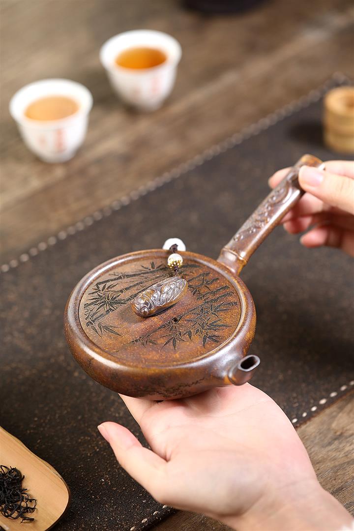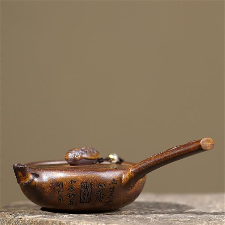 原礦紫朱泥手工描金漁翁茶壺POT6764