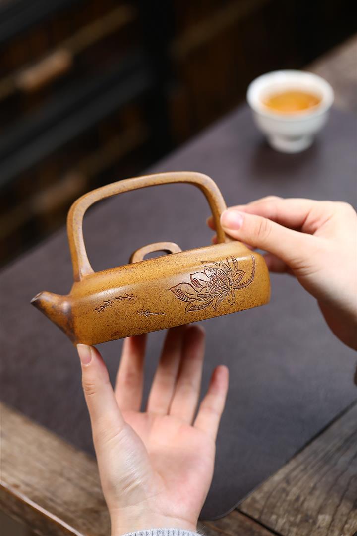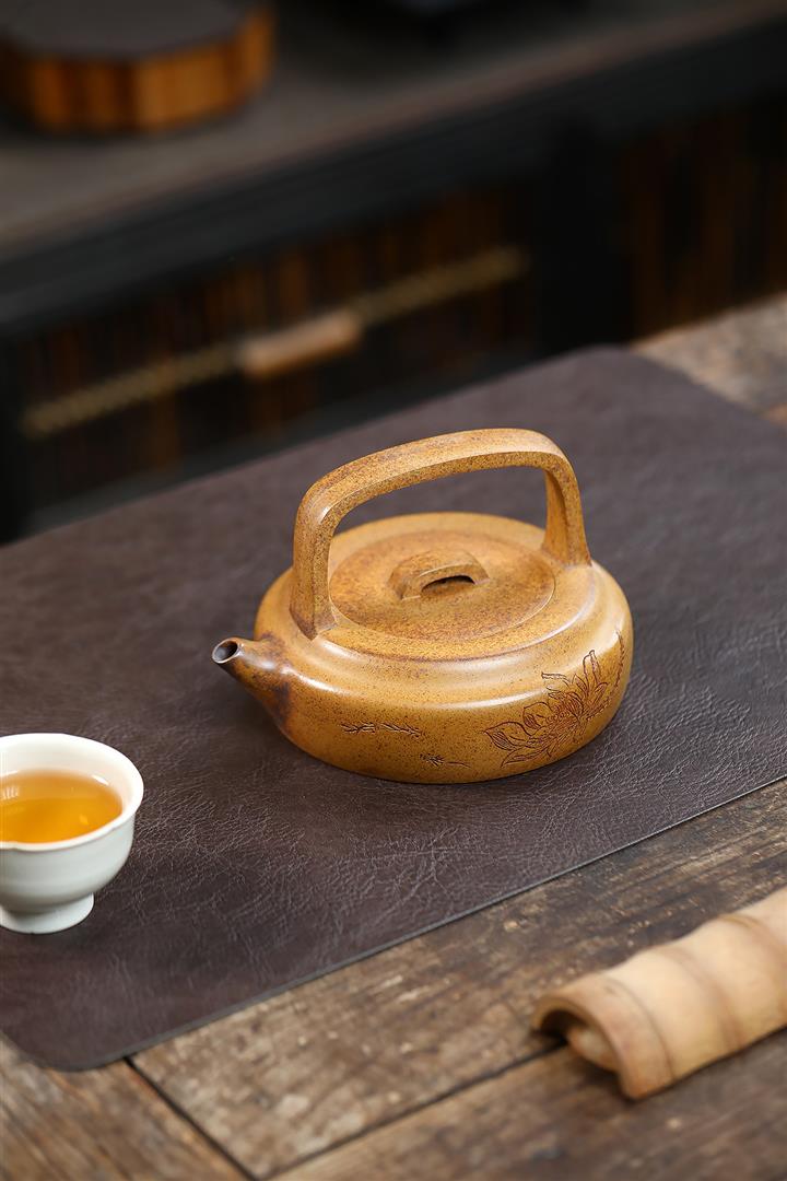 280cc原礦龍骨金砂高溫蓮花提梁壺POT9414