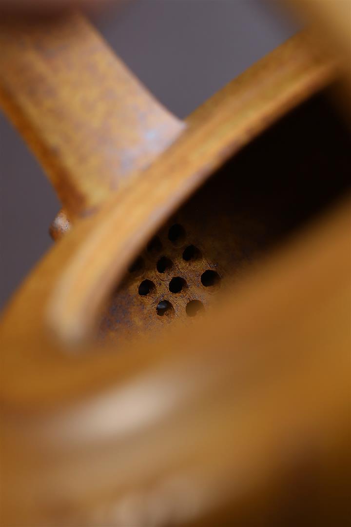 【泥料特點】砂土氣重,似淳實農民,日久使用,漸露鋒芒,養成變化,溫潤莊重。紫砂是壹種雙重氣孔結構的多孔性材質,氣孔微細,密度高。用紫砂壺沏茶,不失原味,且香不渙散,得茶之真香真味。紫砂使用越久,壺身色澤越發光亮照人,氣韻溫雅。紫砂壺長久使用器身會因撫摸擦拭,變得越發溫潤光澤。