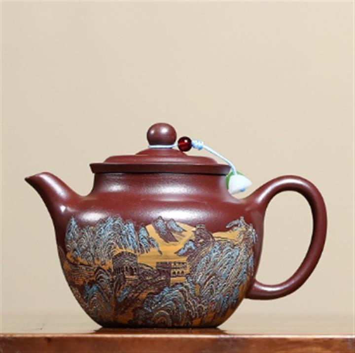 家藏黃金朱泥純手工童趣茶壺POT7328