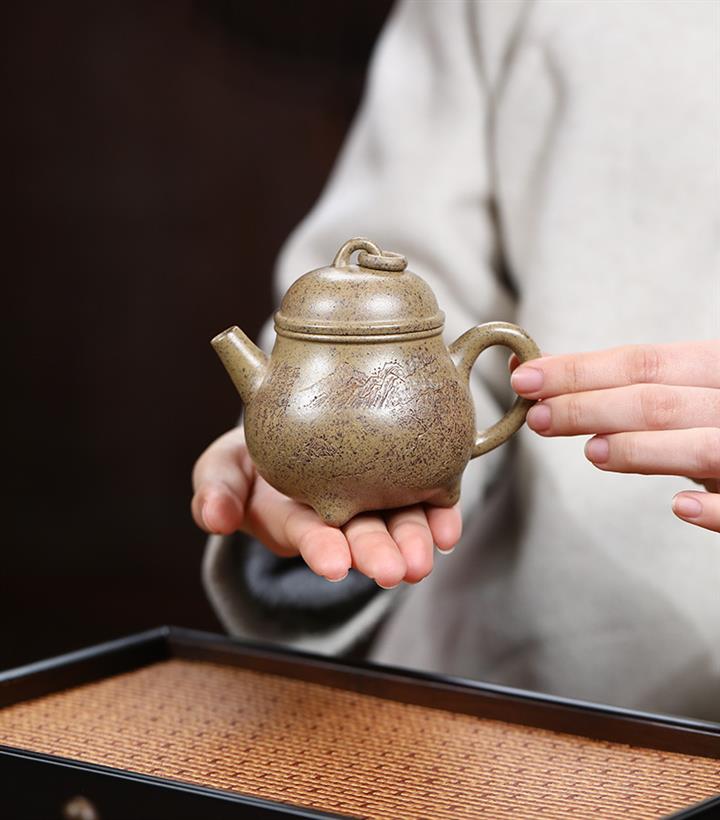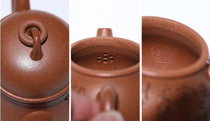 【泥料特點】砂土氣重,似淳實農民,日久使用,漸露鋒芒,養成變化,溫潤莊重。紫砂是壹種雙重氣孔結構的多孔性材質,氣孔微細,密度高。用紫砂壺沏茶,不失原味,且香不渙散,得茶之真香真味。紫砂使用越久,壺身色澤越發光亮照人,氣韻溫雅。紫砂壺長久使用器身會因撫摸擦拭,變得越發溫潤光澤。