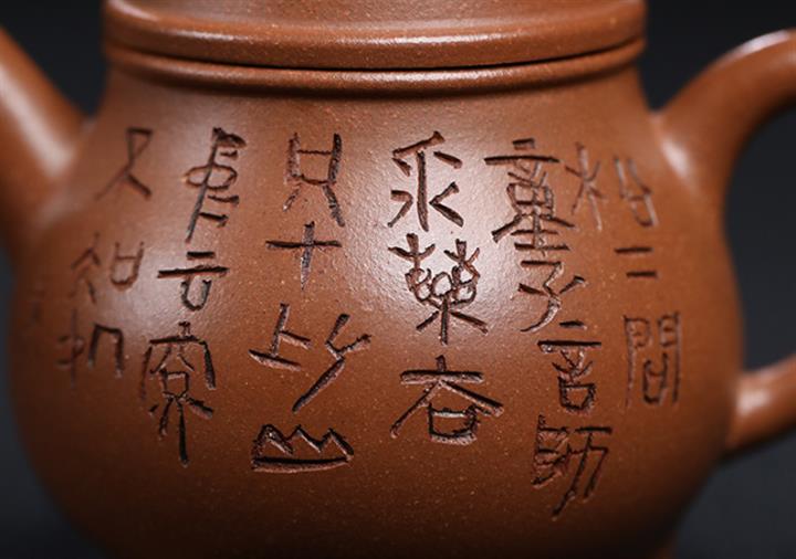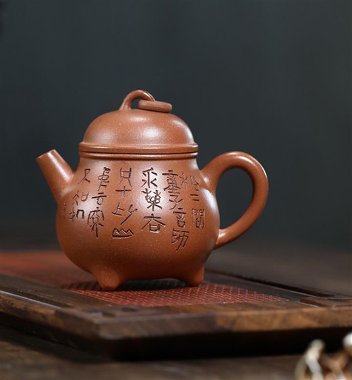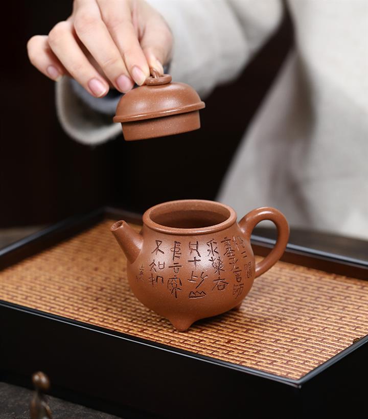 原礦大紅袍刻竹靜心德鐘茶壺POT7532