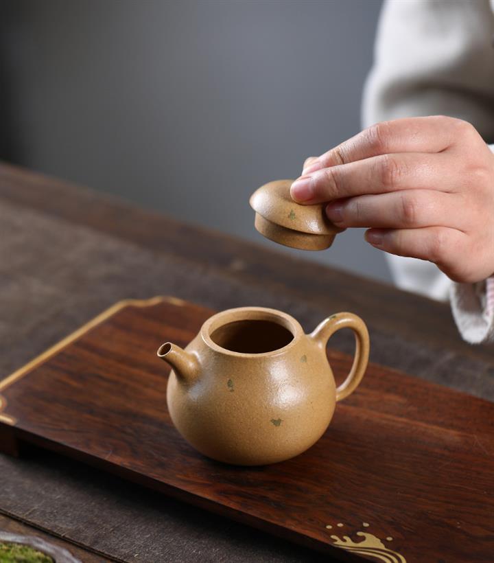 【泥料特點】砂土氣重,似淳實農民,日久使用,漸露鋒芒,養成變化,溫潤莊重。紫砂是壹種雙重氣孔結構的多孔性材質,氣孔微細,密度高。用紫砂壺沏茶,不失原味,且香不渙散,得茶之真香真味。紫砂使用越久,壺身色澤越發光亮照人,氣韻溫雅。紫砂壺長久使用器身會因撫摸擦拭,變得越發溫潤光澤。