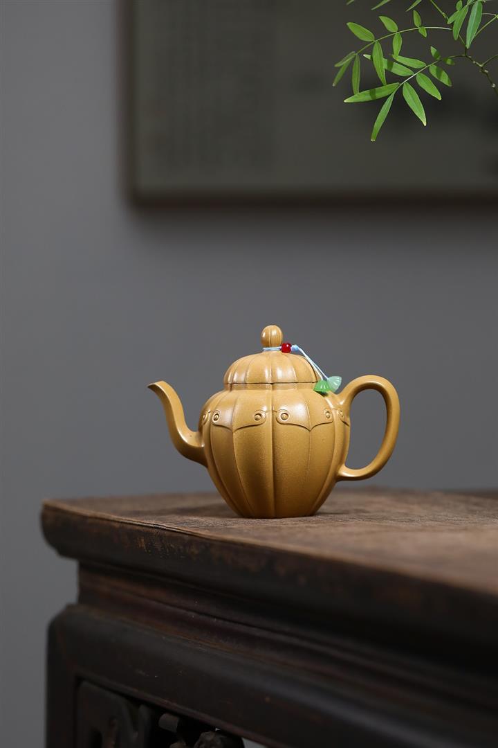 240cc原礦玄鐵石黃錦繡寒江茶壺POT9348