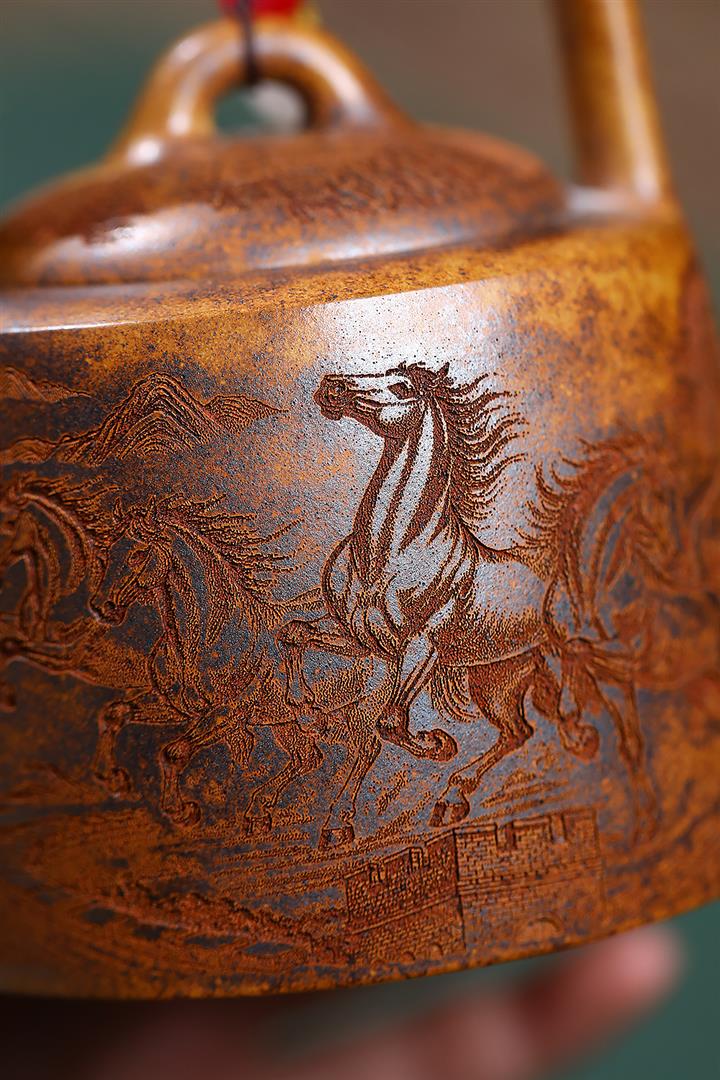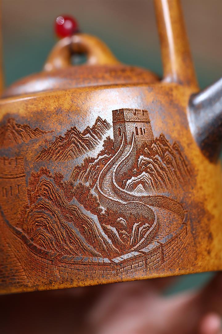 六方宮燈原礦龍骨金砂手刻紫砂壺工堂pot3868
