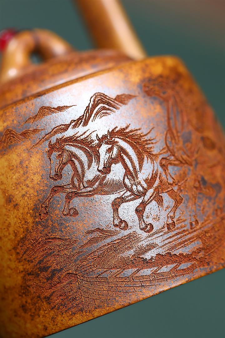 吉祥如意原礦石黃料紫砂家用禮品茶壺茶具pot3723
