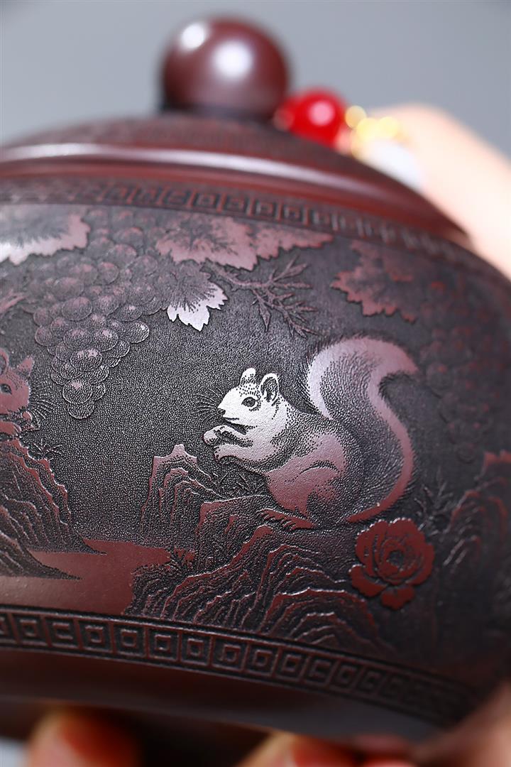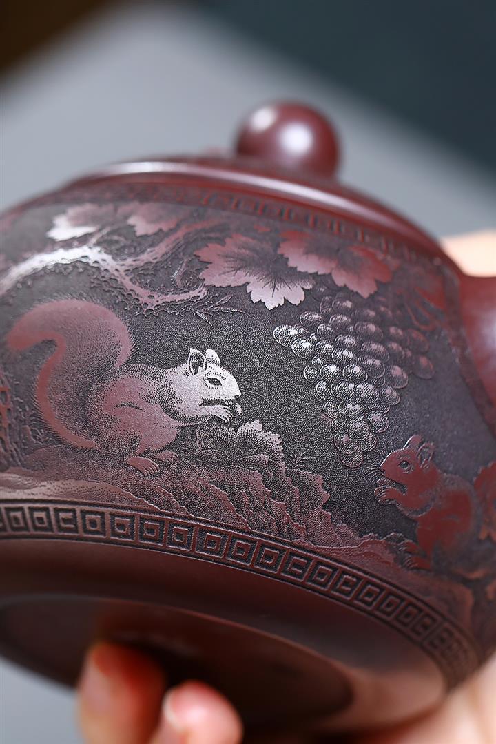 380cc原礦石紅松鼠葡萄西施泡茶壺POT9494