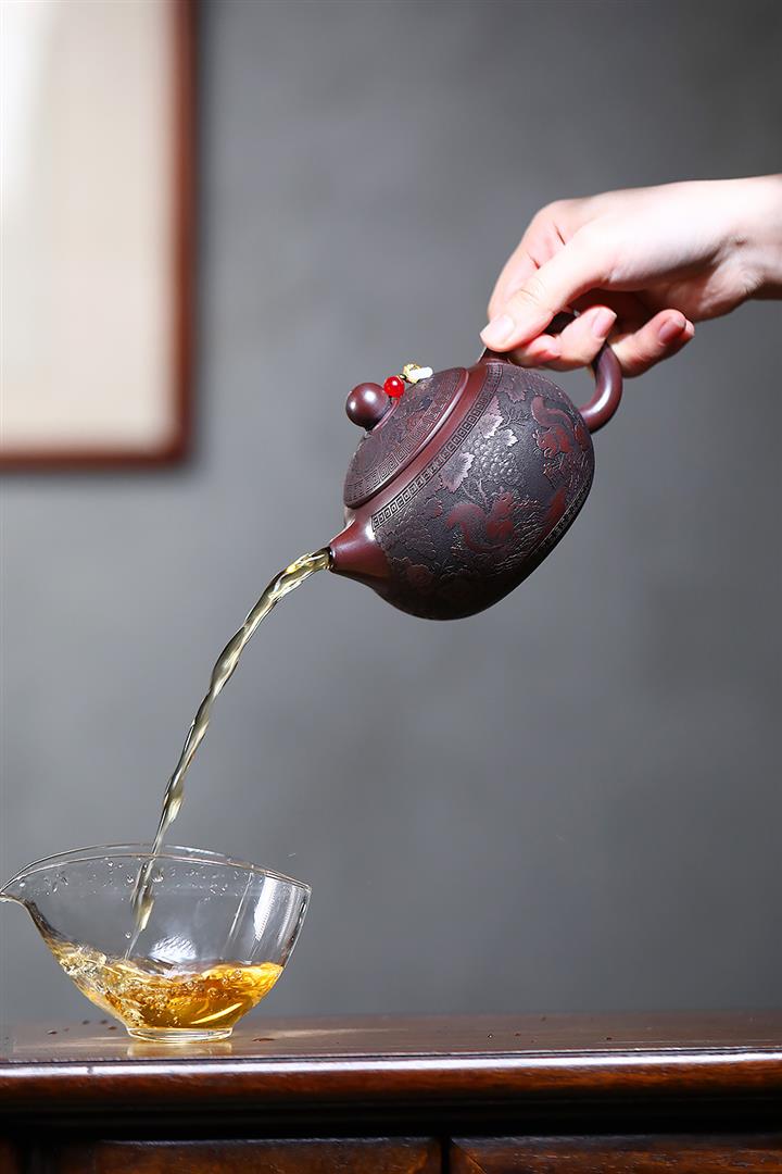 300cc原礦墨綠泥龍鳳呈祥漢瓦茶壺POT9428