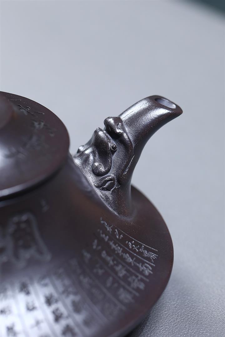 【作品介紹】此款壺形線條流暢,壺把,壺嘴,壺身壹氣呵成栩栩如生,是收藏把玩的好壺,泥料色澤古樸典雅,日久使用,漸露鋒芒,養成變化快,溫潤莊重,用其泡茶,使用的年代久,壺身就溫潤,泡出來的茶湯也就醇郁芳馨。