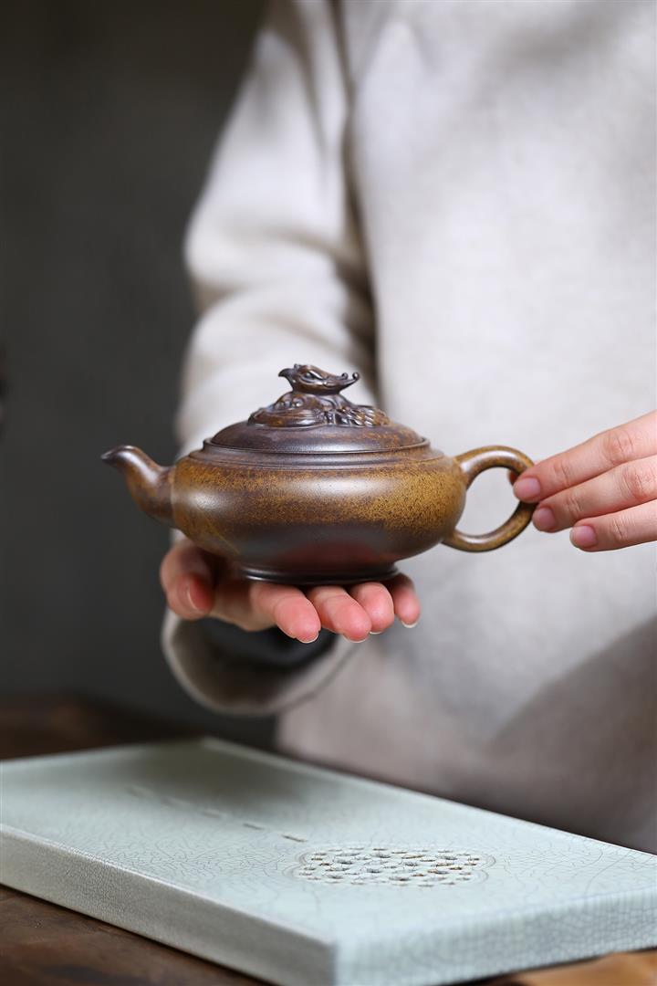 【作品介紹】此款壺形線條流暢,壺把,壺嘴,壺身壹氣呵成栩栩如生,是收藏把玩的好壺,泥料色澤古樸典雅,日久使用,漸露鋒芒,養成變化快,溫潤莊重,用其泡茶,使用的年代久,壺身就溫潤,泡出來的茶湯也就醇郁芳馨。