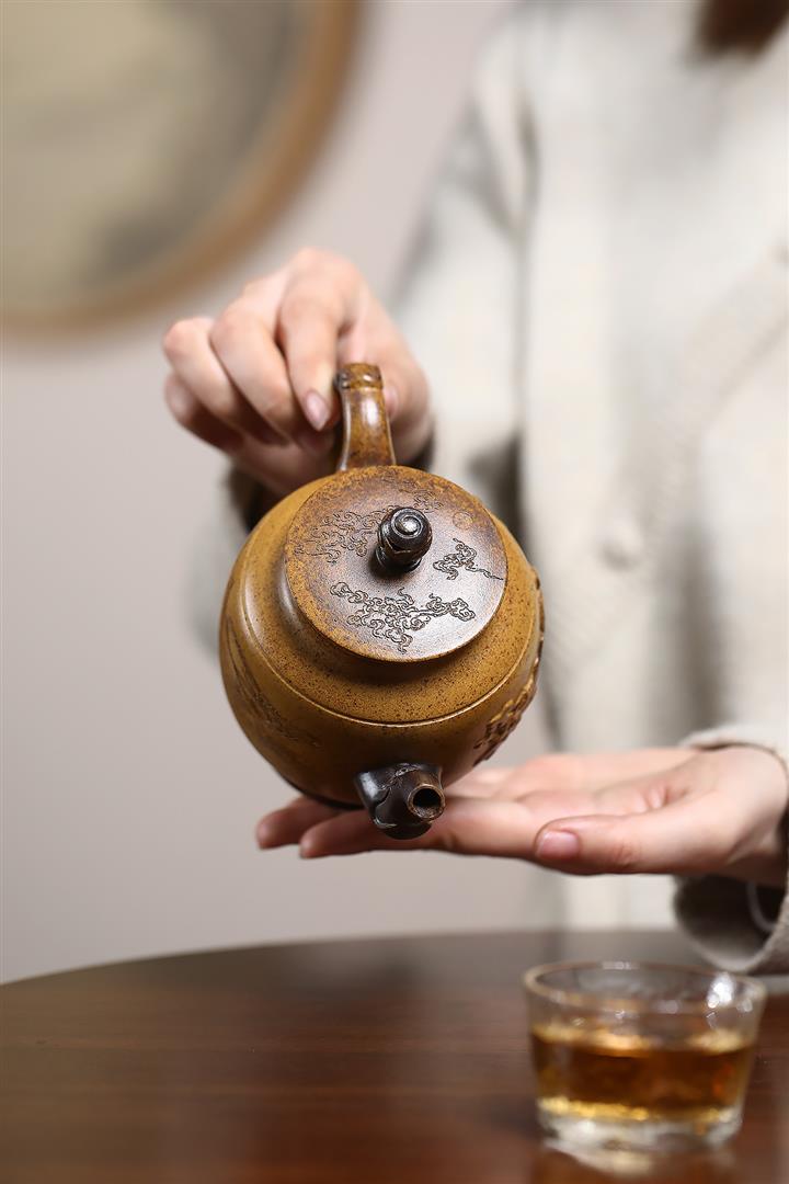 【作品介紹】此款壺形線條流暢,壺把,壺嘴,壺身壹氣呵成栩栩如生,是收藏把玩的好壺,泥料色澤古樸典雅,日久使用,漸露鋒芒,養成變化快,溫潤莊重,用其泡茶,使用的年代久,壺身就溫潤,泡出來的茶湯也就醇郁芳馨。