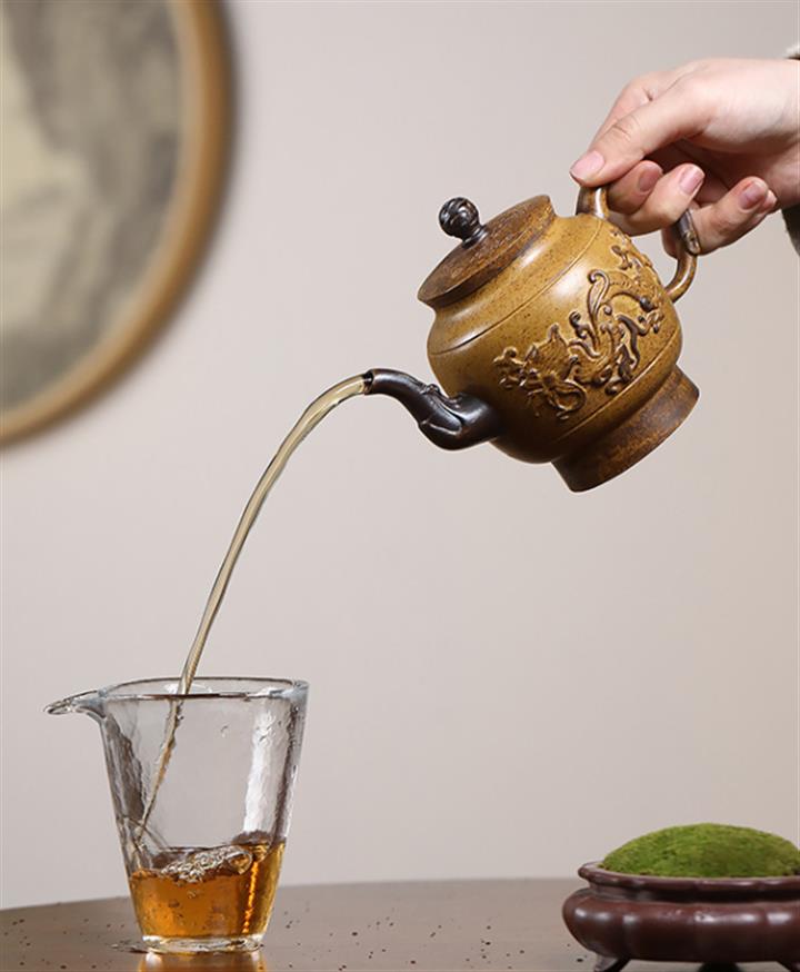 【泥料特點】砂土氣重,似淳實農民,日久使用,漸露鋒芒,養成變化,溫潤莊重。紫砂是壹種雙重氣孔結構的多孔性材質,氣孔微細,密度高。用紫砂壺沏茶,不失原味,且香不渙散,得茶之真香真味。紫砂使用越久,壺身色澤越發光亮照人,氣韻溫雅。紫砂壺長久使用器身會因撫摸擦拭,變得越發溫潤光澤。