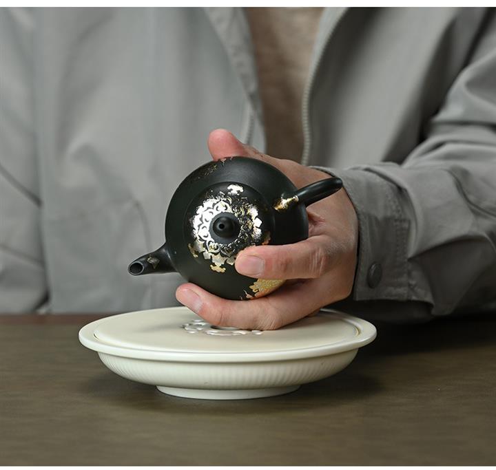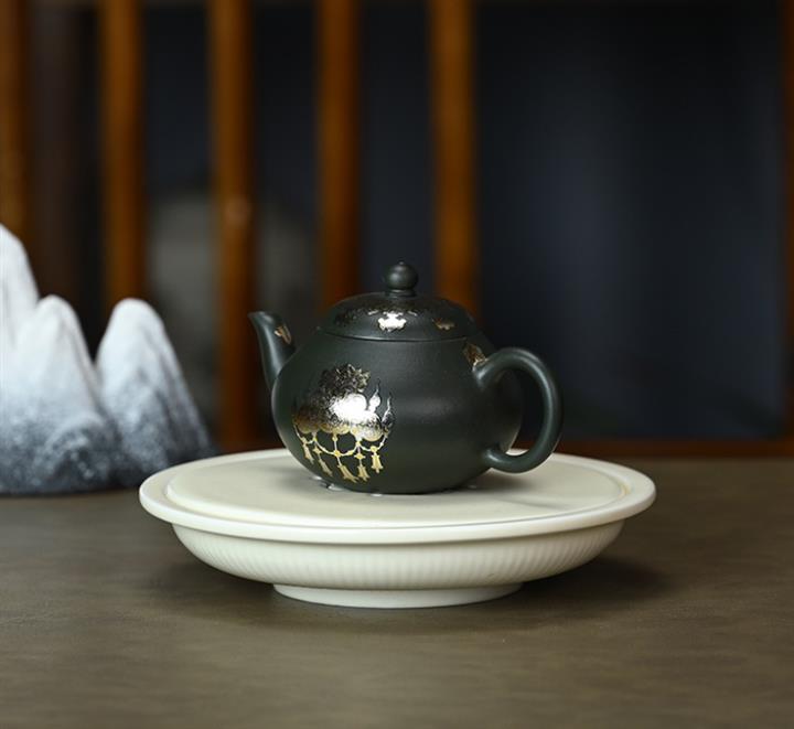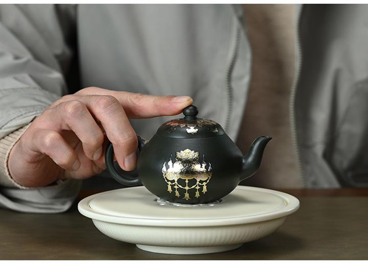 原礦朱泥琺瑯彩描金桑盤茶壺POT7424