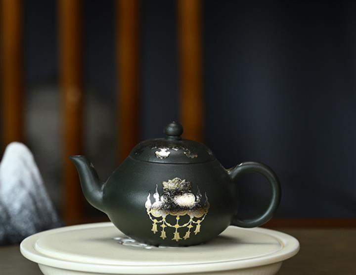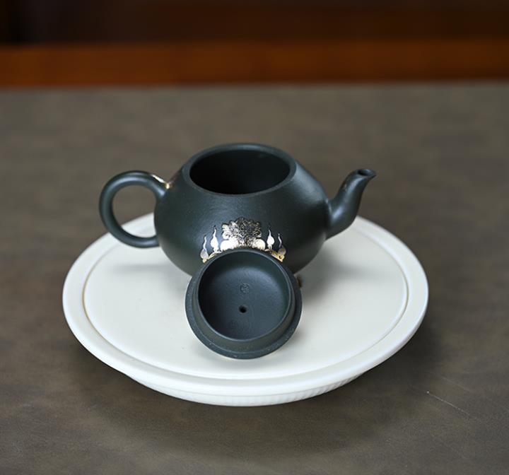 150cc原礦墨綠泥貼金君德泡茶壺POT9543