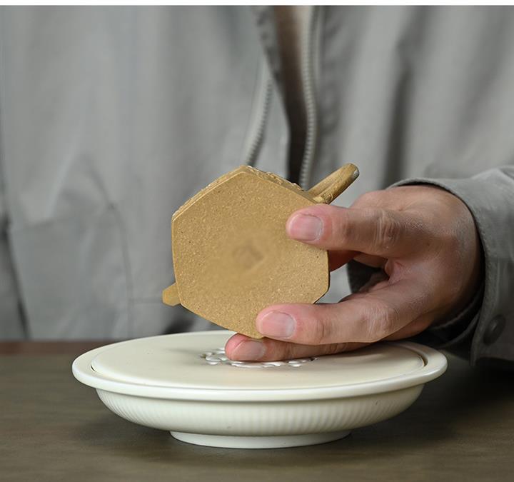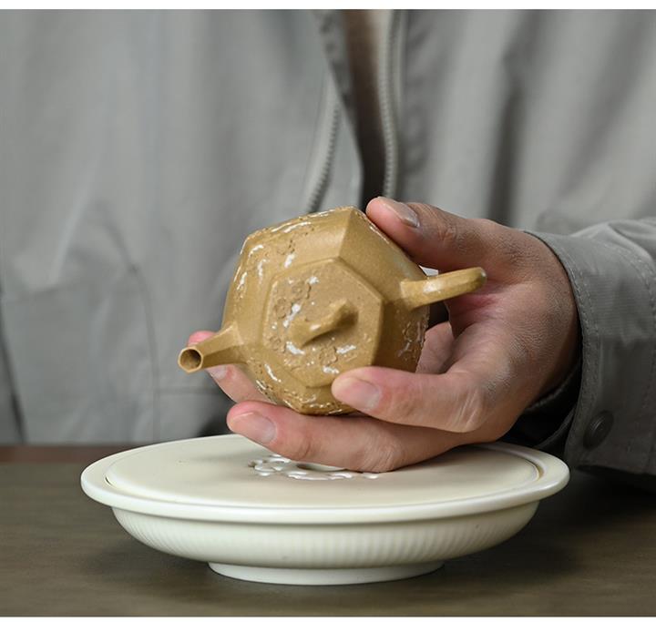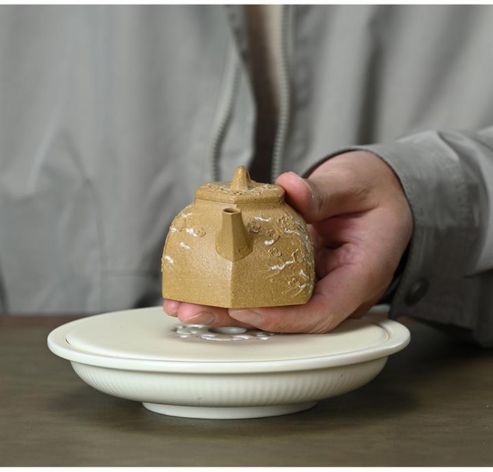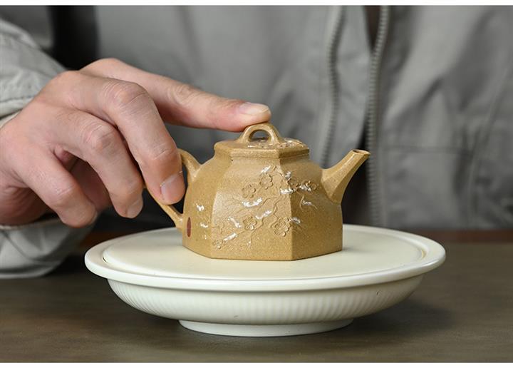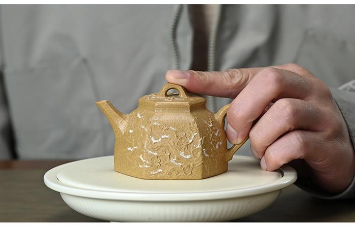 【泥料特點】砂土氣重,似淳實農民,日久使用,漸露鋒芒,養成變化,溫潤莊重。紫砂是壹種雙重氣孔結構的多孔性材質,氣孔微細,密度高。用紫砂壺沏茶,不失原味,且香不渙散,得茶之真香真味。紫砂使用越久,壺身色澤越發光亮照人,氣韻溫雅。紫砂壺長久使用器身會因撫摸擦拭,變得越發溫潤光澤。
