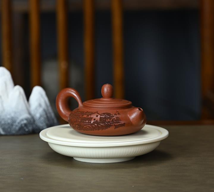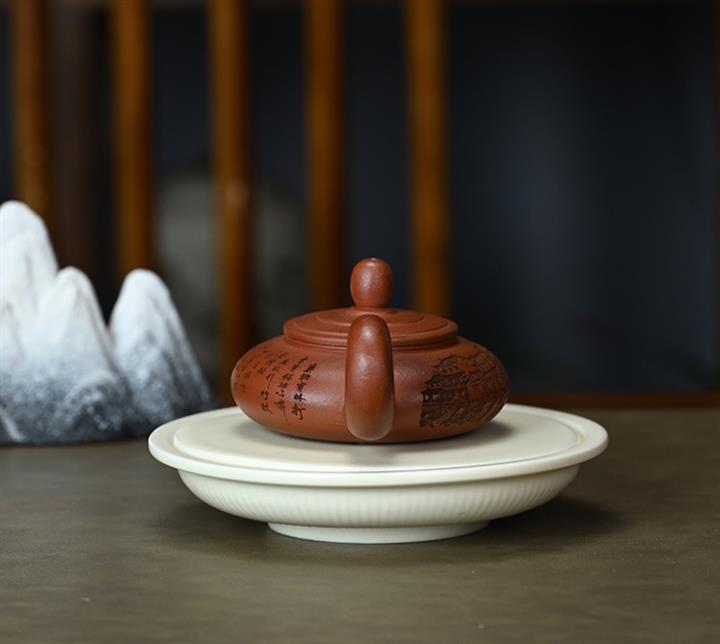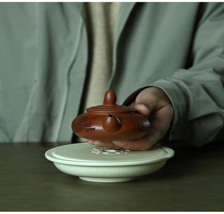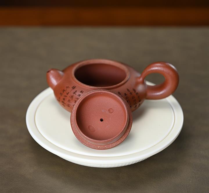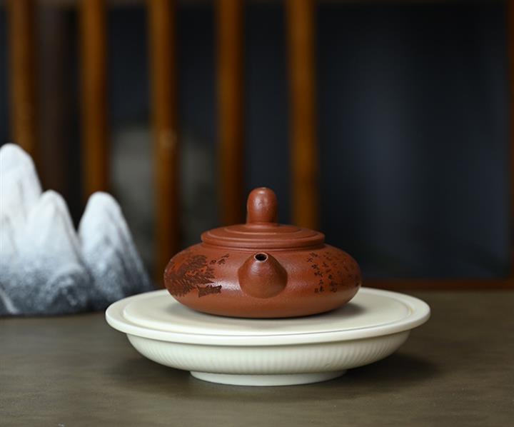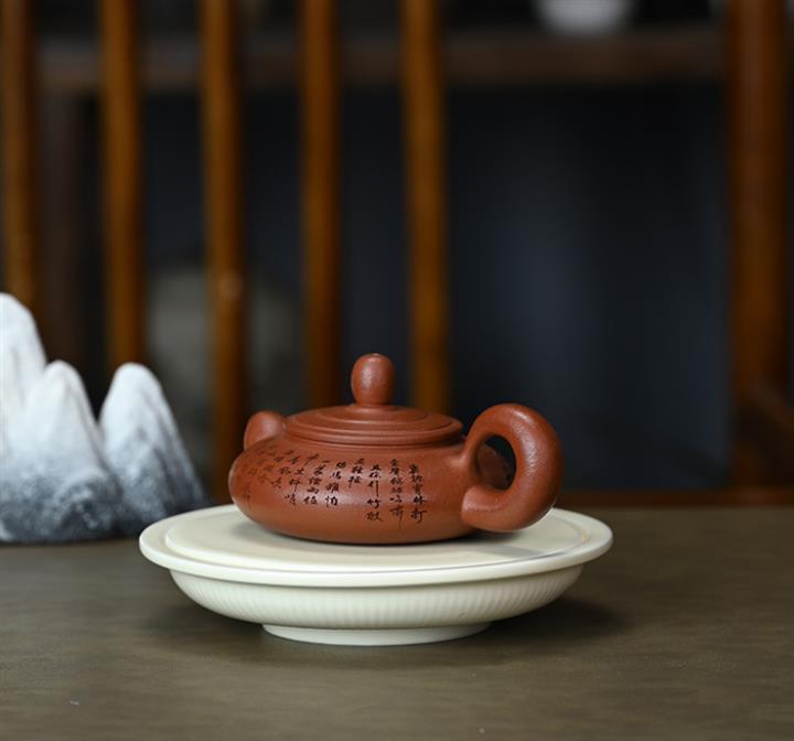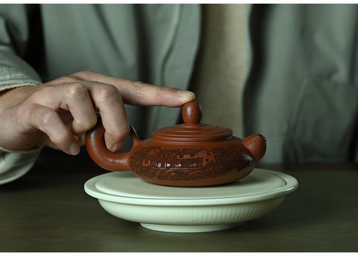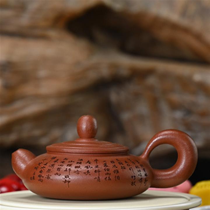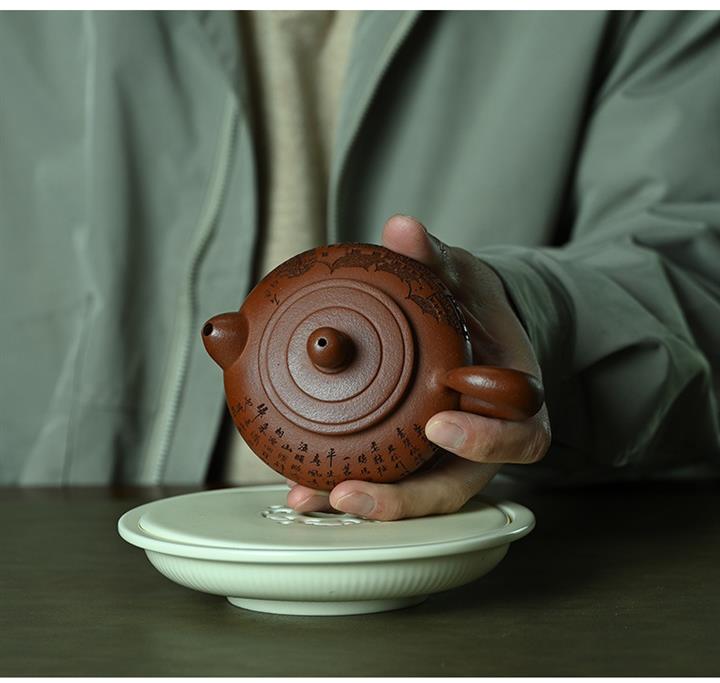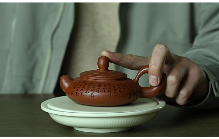 【泥料特點】砂土氣重,似淳實農民,日久使用,漸露鋒芒,養成變化,溫潤莊重。紫砂是壹種雙重氣孔結構的多孔性材質,氣孔微細,密度高。用紫砂壺沏茶,不失原味,且香不渙散,得茶之真香真味。紫砂使用越久,壺身色澤越發光亮照人,氣韻溫雅。紫砂壺長久使用器身會因撫摸擦拭,變得越發溫潤光澤。