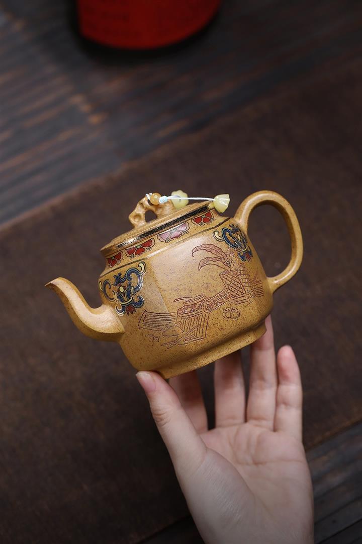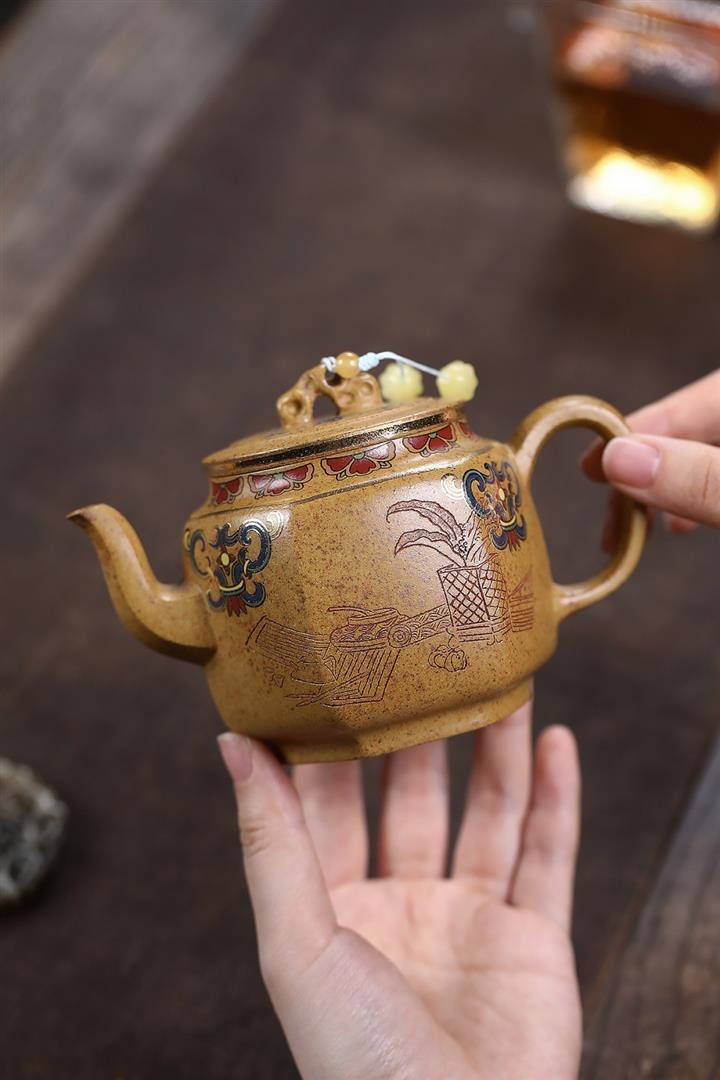 原礦紫泥全手工描金一心向佛茶壺POT6815