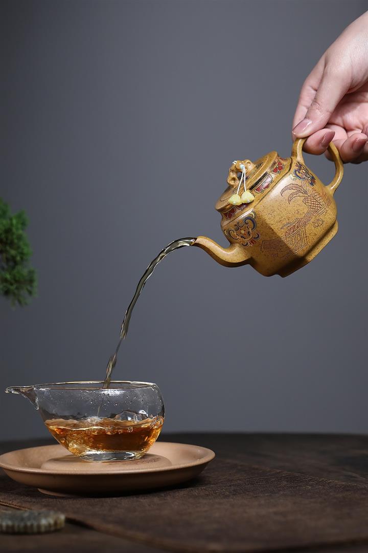 【泥料特點】砂土氣重,似淳實農民,日久使用,漸露鋒芒,養成變化,溫潤莊重。紫砂是壹種雙重氣孔結構的多孔性材質,氣孔微細,密度高。用紫砂壺沏茶,不失原味,且香不渙散,得茶之真香真味。紫砂使用越久,壺身色澤越發光亮照人,氣韻溫雅。紫砂壺長久使用器身會因撫摸擦拭,變得越發溫潤光澤。