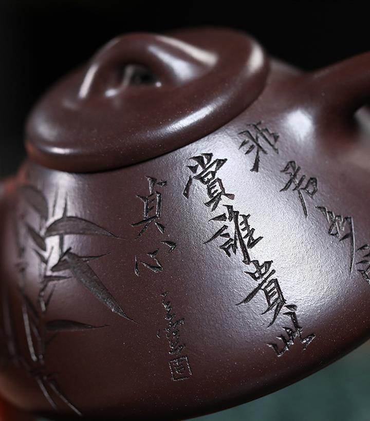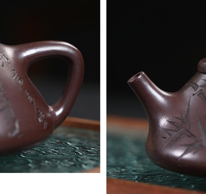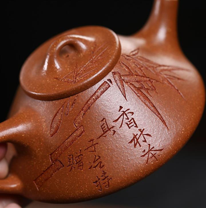 【作品介紹】此款壺形線條流暢,壺把,壺嘴,壺身壹氣呵成栩栩如生,是收藏把玩的好壺,泥料色澤古樸典雅,日久使用,漸露鋒芒,養成變化快,溫潤莊重,用其泡茶,使用的年代久,壺身就溫潤,泡出來的茶湯也就醇郁芳馨。