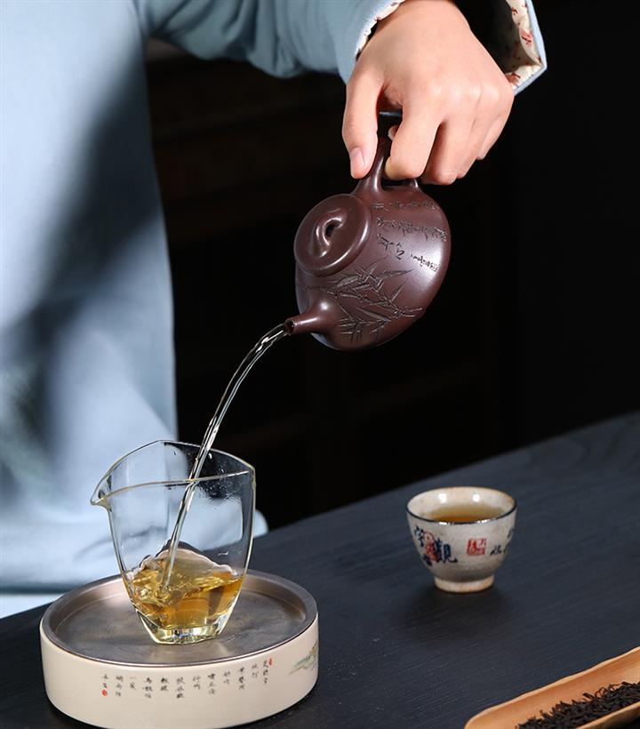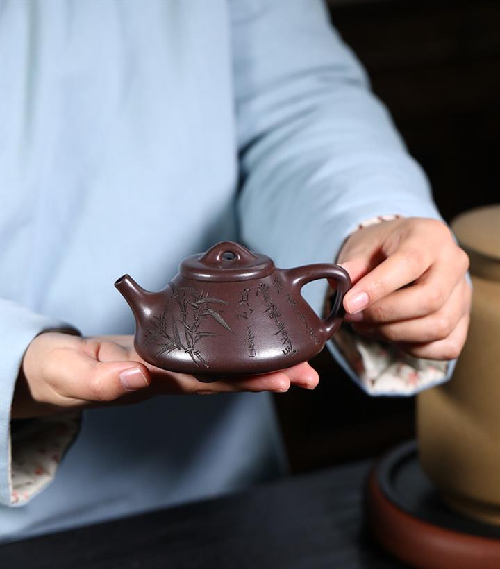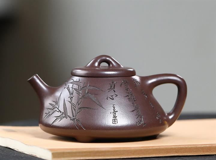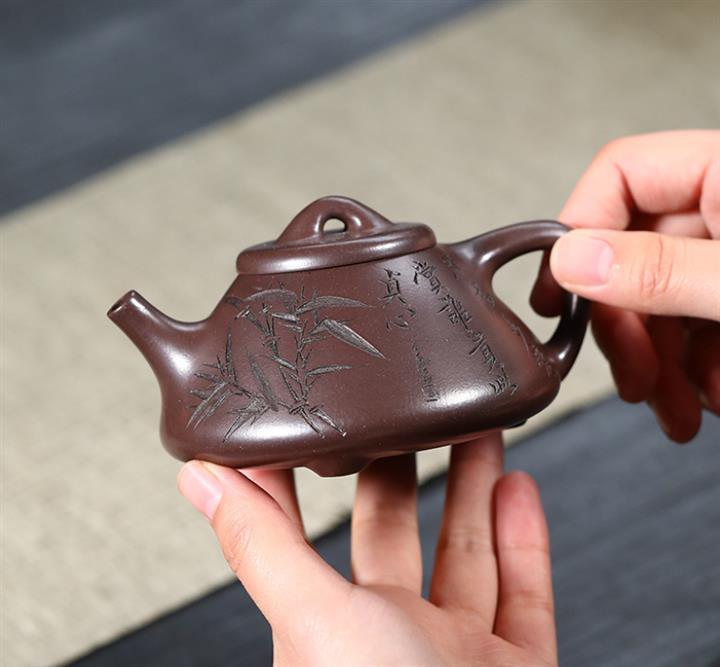 【泥料特點】砂土氣重,似淳實農民,日久使用,漸露鋒芒,養成變化,溫潤莊重。紫砂是壹種雙重氣孔結構的多孔性材質,氣孔微細,密度高。用紫砂壺沏茶,不失原味,且香不渙散,得茶之真香真味。紫砂使用越久,壺身色澤越發光亮照人,氣韻溫雅。紫砂壺長久使用器身會因撫摸擦拭,變得越發溫潤光澤。