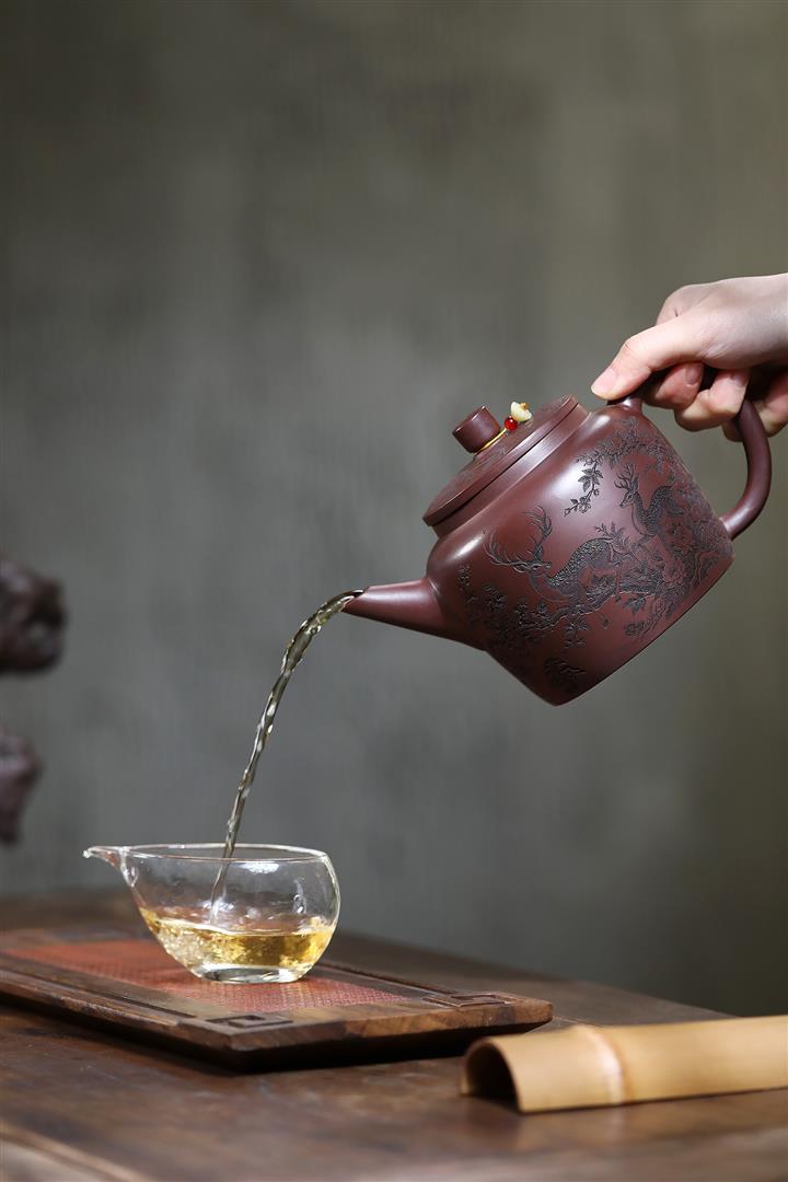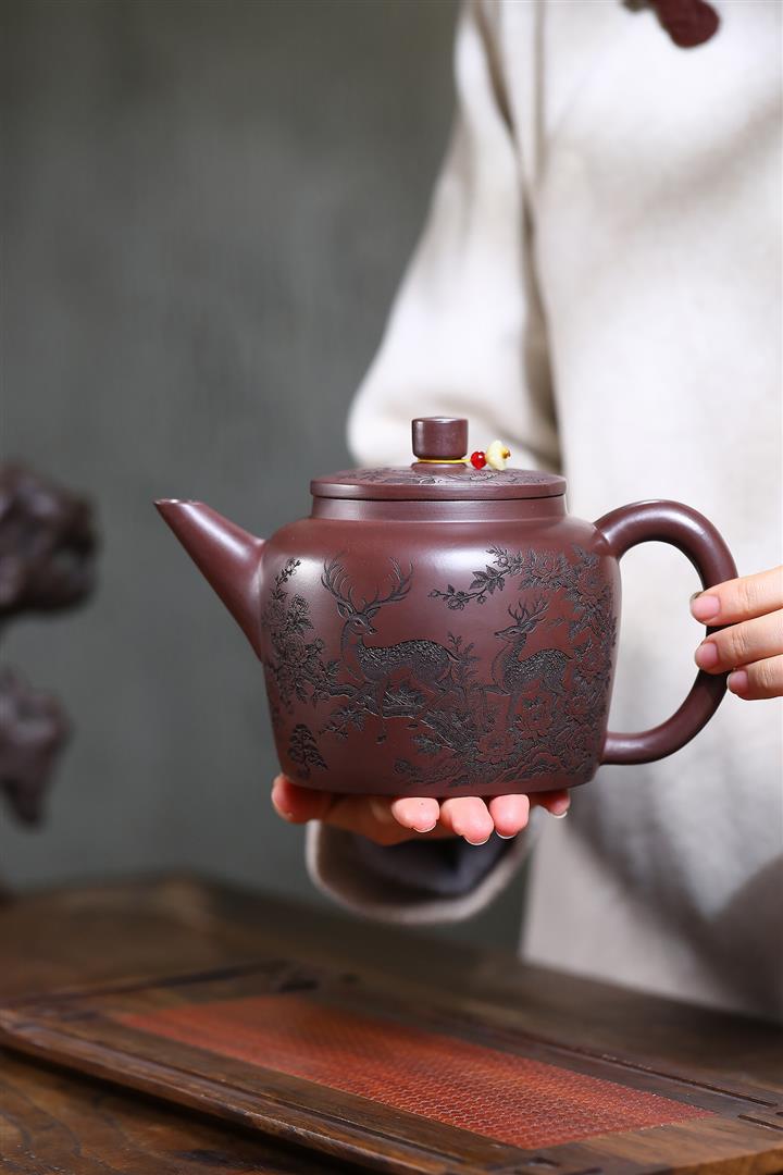 【作品介紹】此款壺形線條流暢,壺把,壺嘴,壺身壹氣呵成栩栩如生,是收藏把玩的好壺,泥料色澤古樸典雅,日久使用,漸露鋒芒,養成變化快,溫潤莊重,用其泡茶,使用的年代久,壺身就溫潤,泡出來的茶湯也就醇郁芳馨。