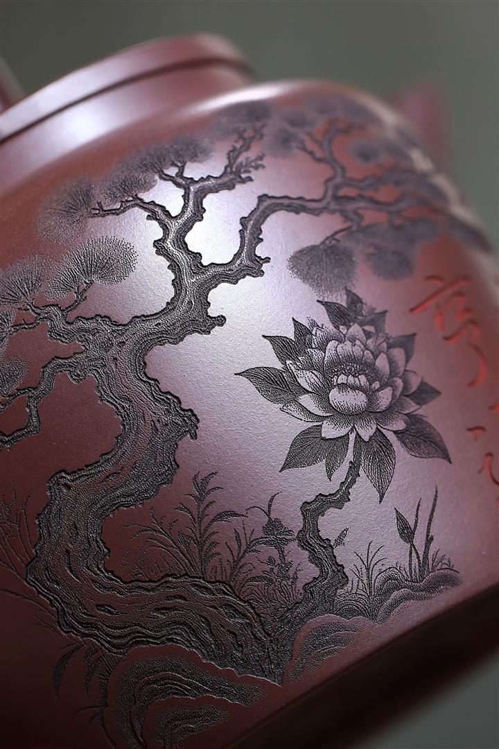 原礦老紅泥春意井欄紫砂壺POT5071