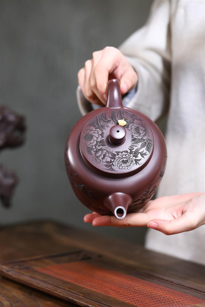 【泥料特點】砂土氣重,似淳實農民,日久使用,漸露鋒芒,養成變化,溫潤莊重。紫砂是壹種雙重氣孔結構的多孔性材質,氣孔微細,密度高。用紫砂壺沏茶,不失原味,且香不渙散,得茶之真香真味。紫砂使用越久,壺身色澤越發光亮照人,氣韻溫雅。紫砂壺長久使用器身會因撫摸擦拭,變得越發溫潤光澤。