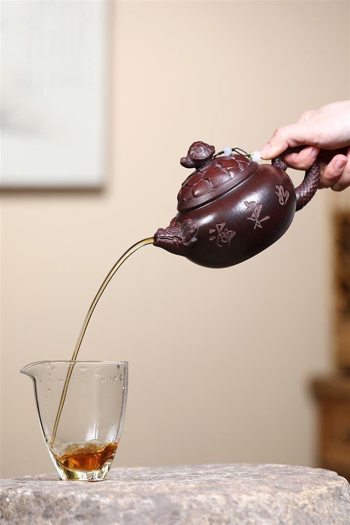 【作品介紹】此款壺形線條流暢,壺把,壺嘴,壺身壹氣呵成栩栩如生,是收藏把玩的好壺,泥料色澤古樸典雅,日久使用,漸露鋒芒,養成變化快,溫潤莊重,用其泡茶,使用的年代久,壺身就溫潤,泡出來的茶湯也就醇郁芳馨。