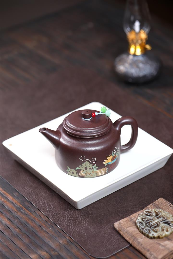 高溫段泥貼花石瓢壺紫砂壺POT4885