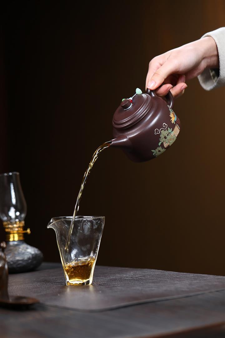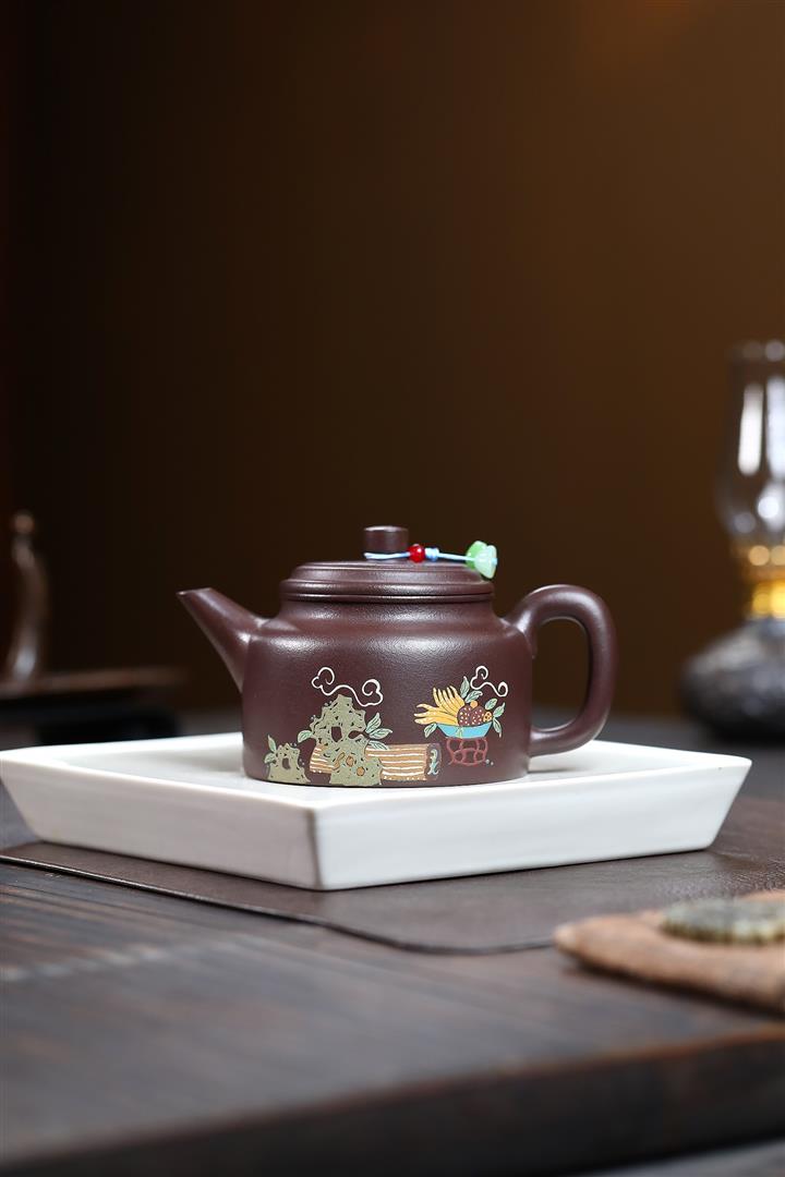 【泥料特點】砂土氣重,似淳實農民,日久使用,漸露鋒芒,養成變化,溫潤莊重。紫砂是壹種雙重氣孔結構的多孔性材質,氣孔微細,密度高。用紫砂壺沏茶,不失原味,且香不渙散,得茶之真香真味。紫砂使用越久,壺身色澤越發光亮照人,氣韻溫雅。紫砂壺長久使用器身會因撫摸擦拭,變得越發溫潤光澤。