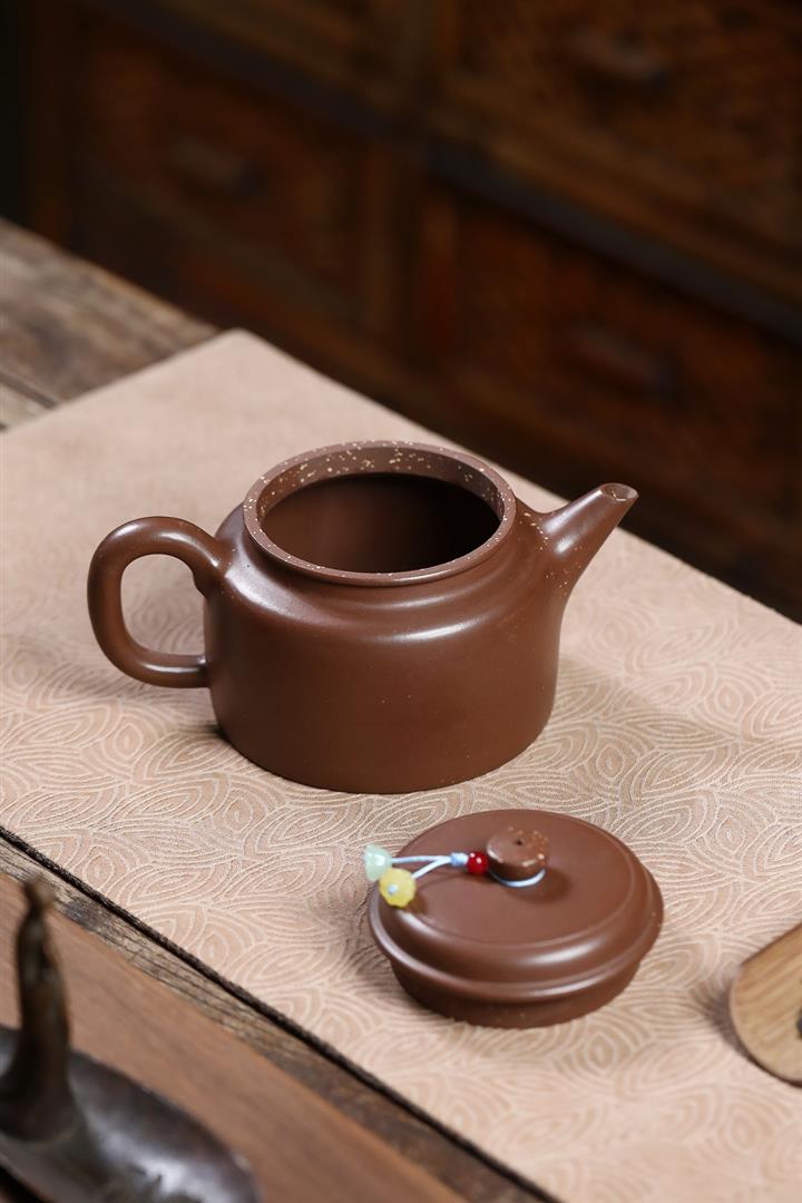 【泥料特點】砂土氣重,似淳實農民,日久使用,漸露鋒芒,養成變化,溫潤莊重。紫砂是壹種雙重氣孔結構的多孔性材質,氣孔微細,密度高。用紫砂壺沏茶,不失原味,且香不渙散,得茶之真香真味。紫砂使用越久,壺身色澤越發光亮照人,氣韻溫雅。紫砂壺長久使用器身會因撫摸擦拭,變得越發溫潤光澤。
