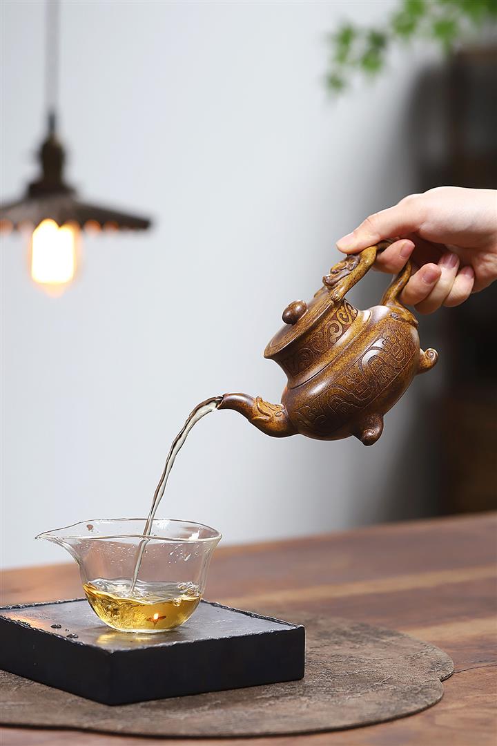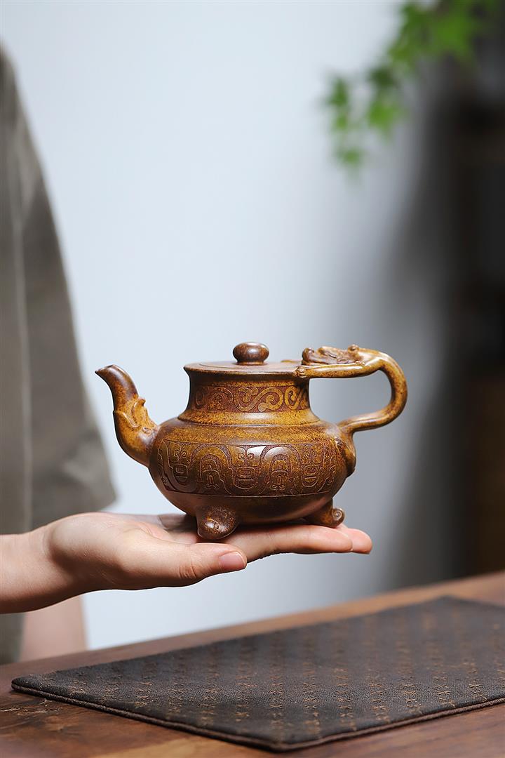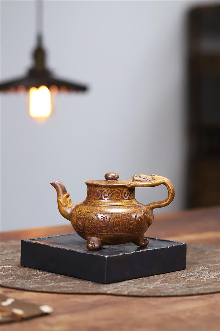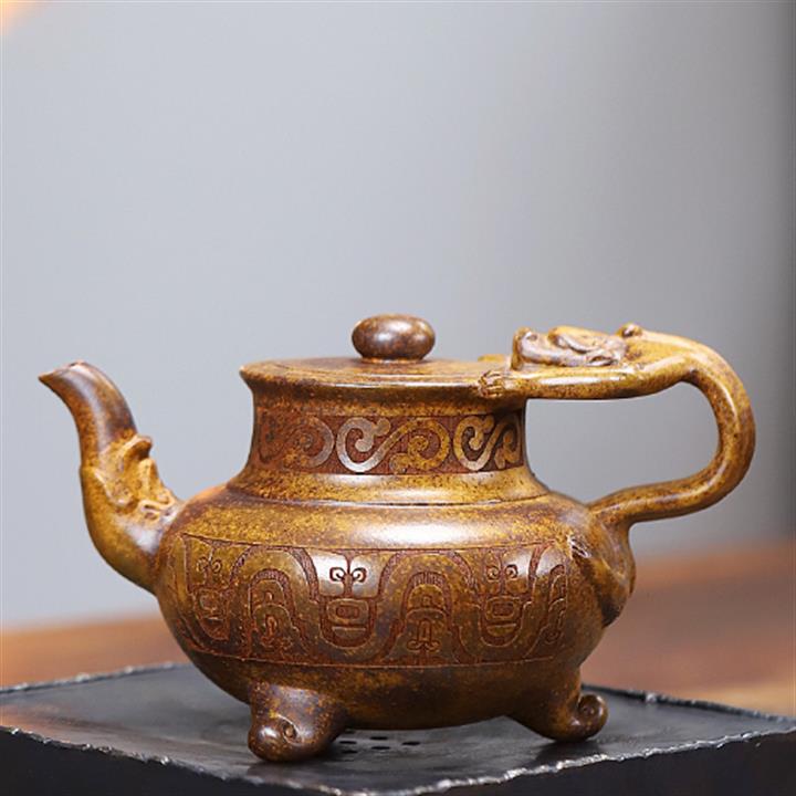 原礦古銅烏泥手工龍紋德鐘茶壺POT6687