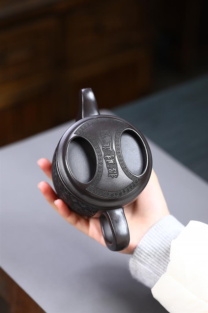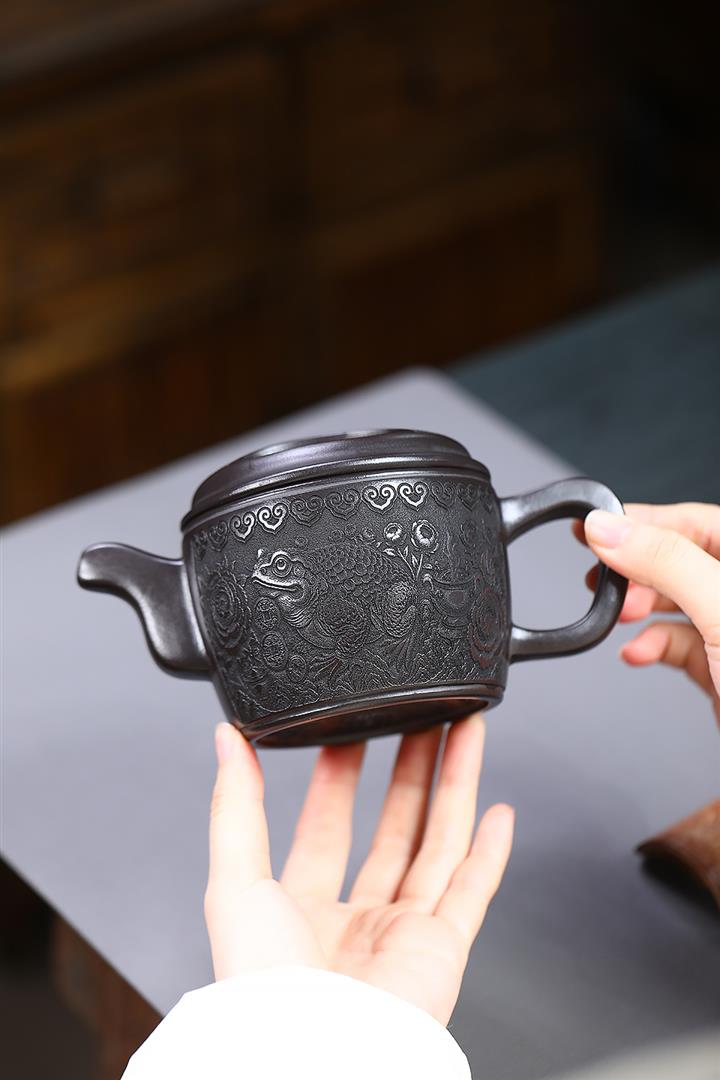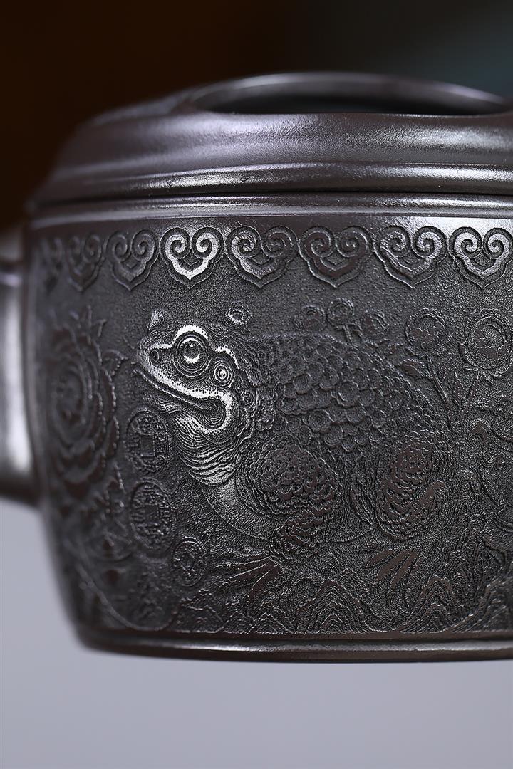 380cc原礦玄鐵石黃金蟾牛蓋漢瓦泡茶壺POT9692