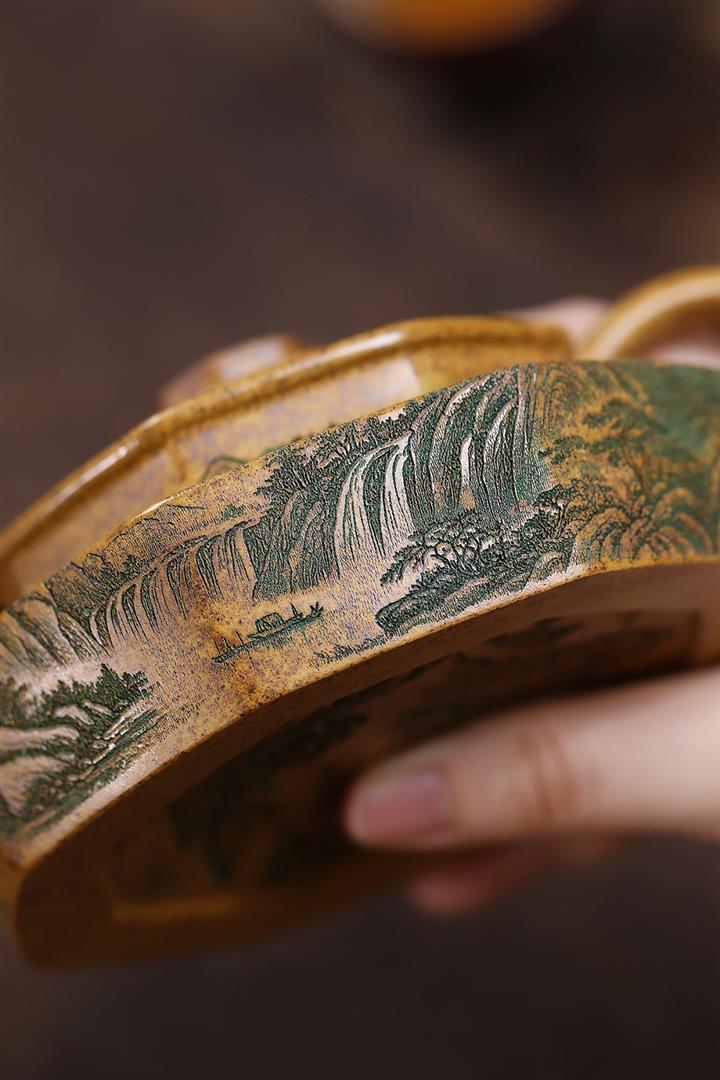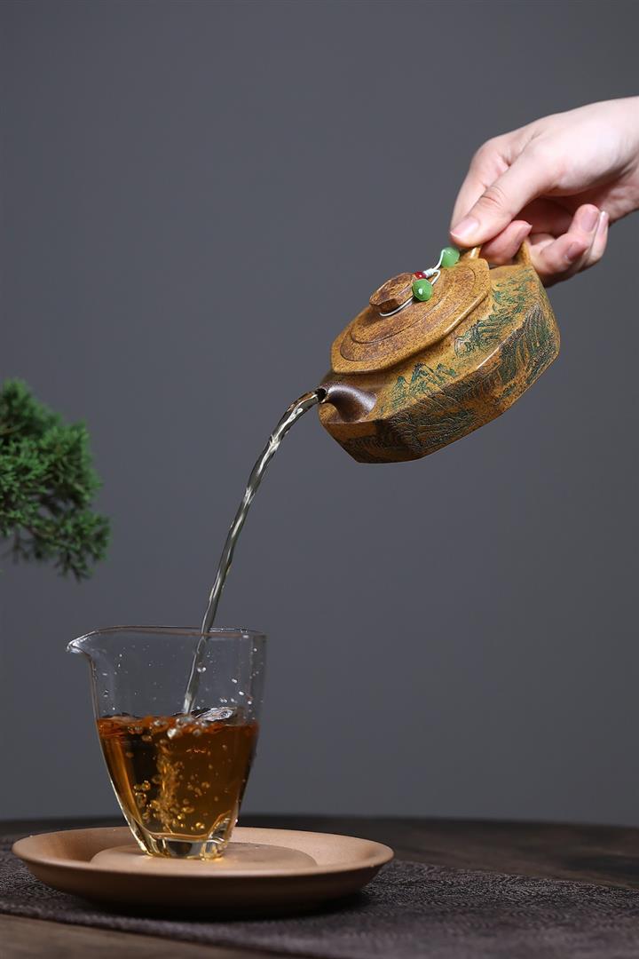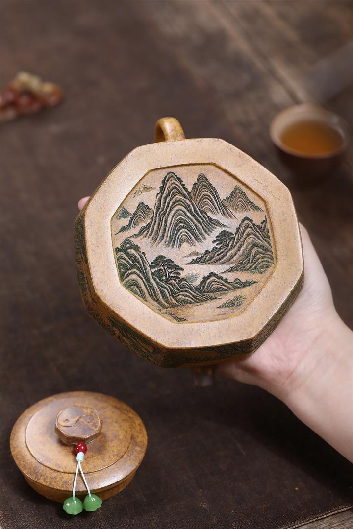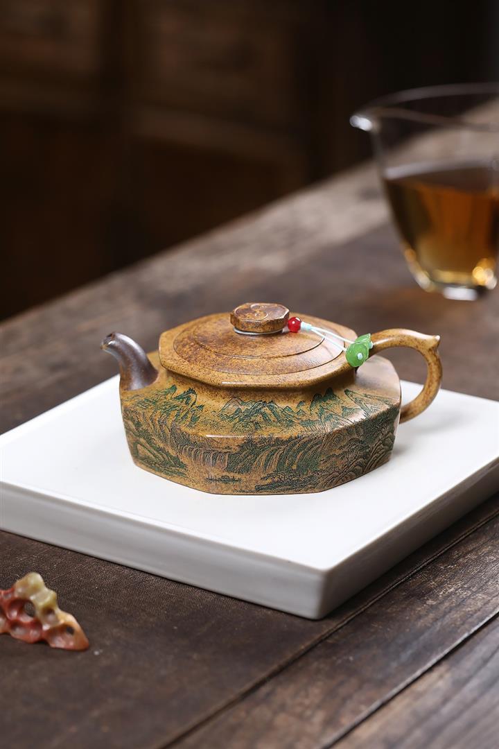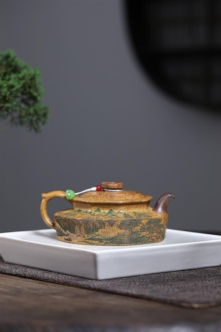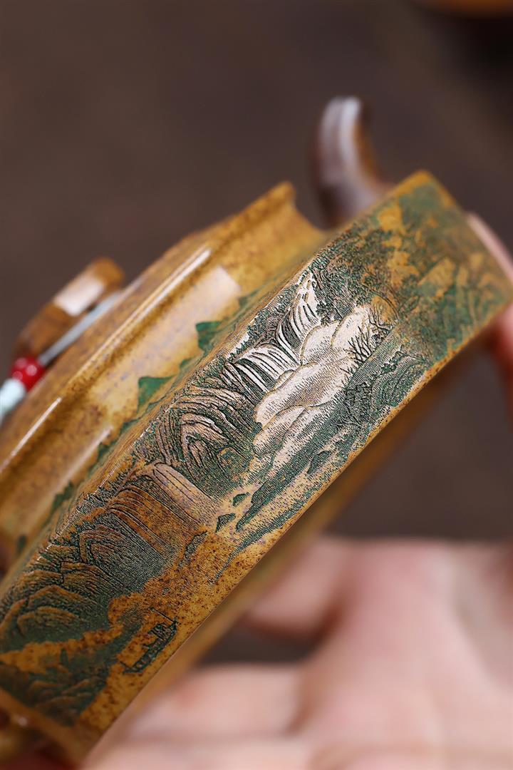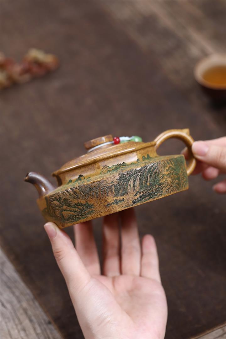 365cc原礦紫泥刻繪山水仿古茶壺POT8580
