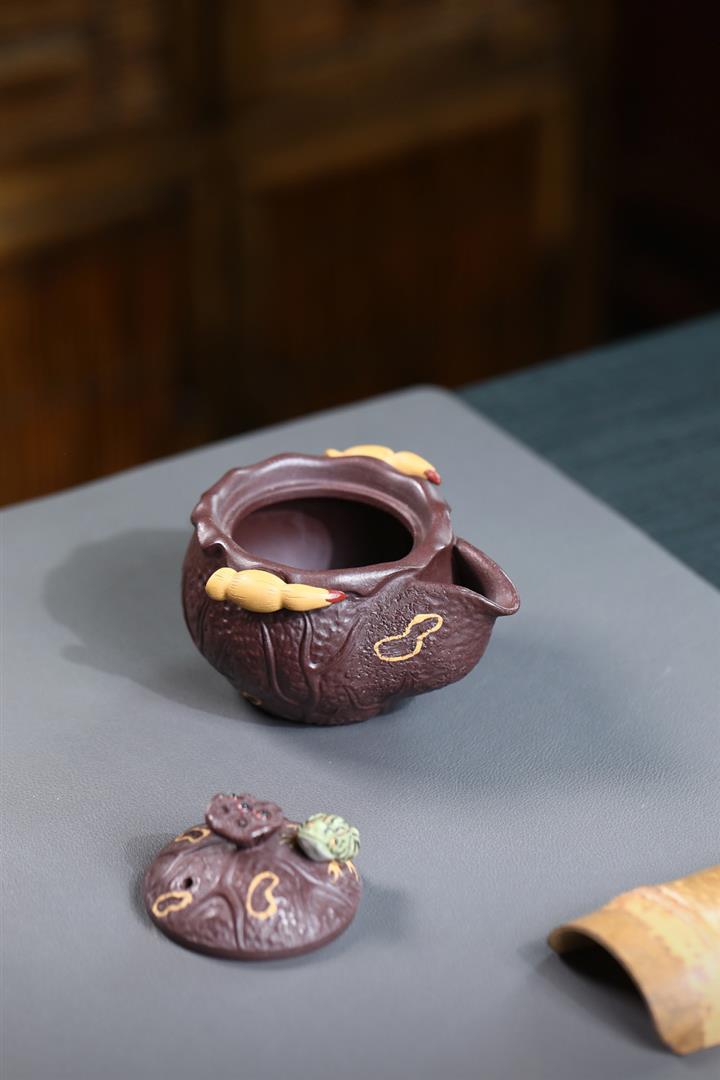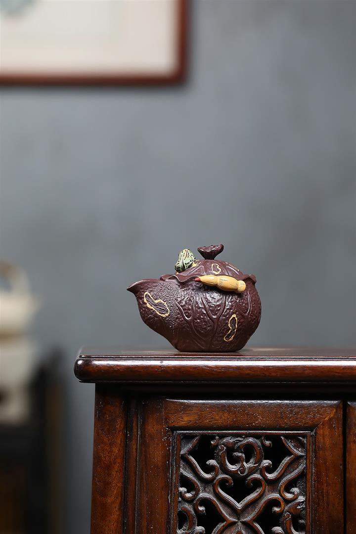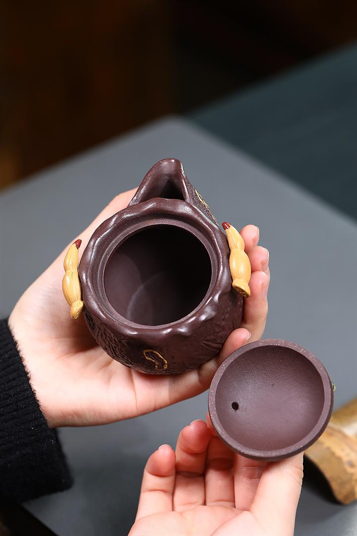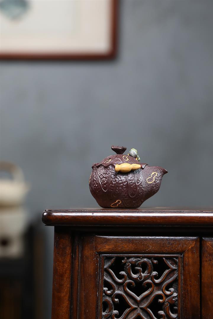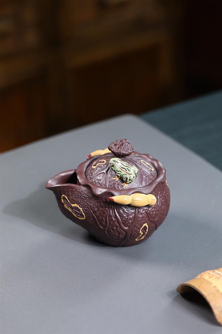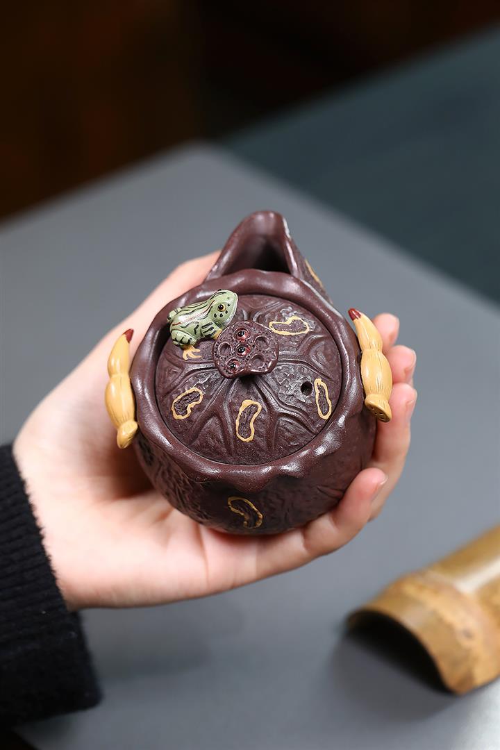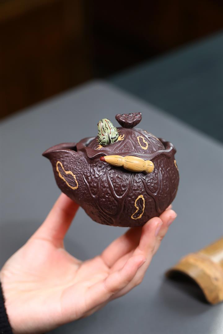 150cc原礦紫泥荷塘月色手抓泡茶壺POT9742