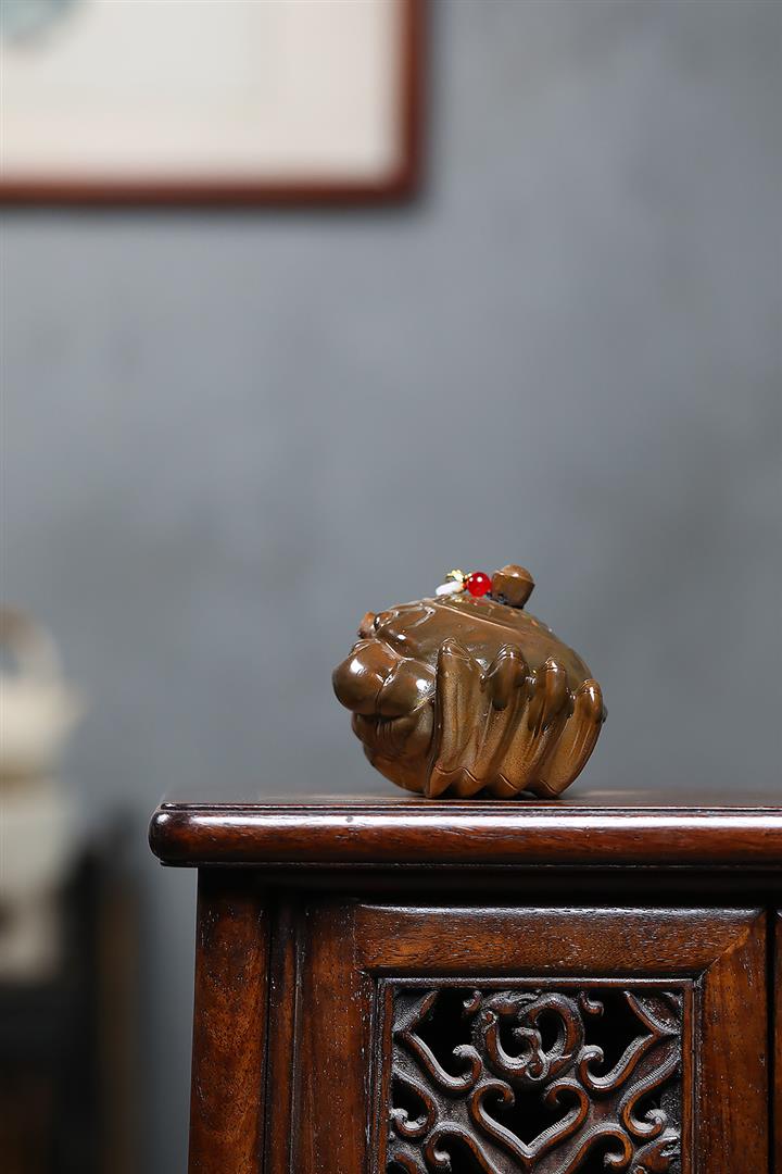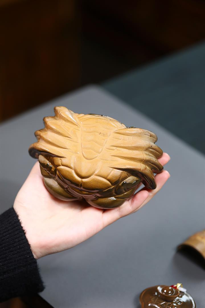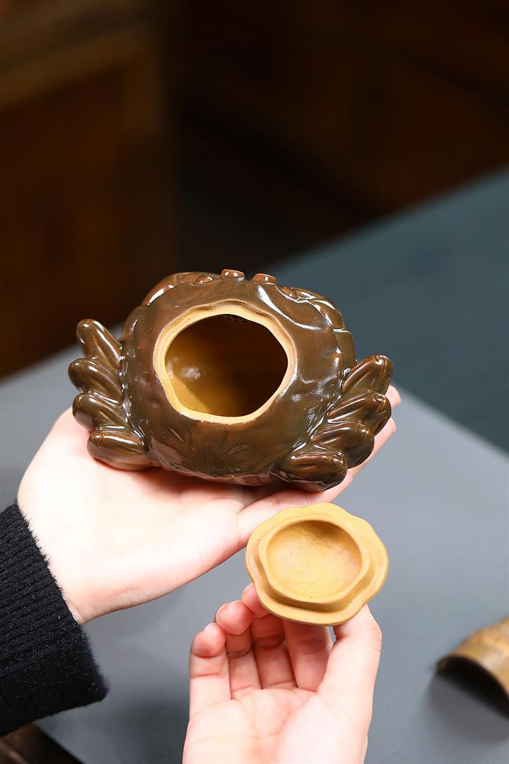 【泥料特點】砂土氣重,似淳實農民,日久使用,漸露鋒芒,養成變化,溫潤莊重。紫砂是壹種雙重氣孔結構的多孔性材質,氣孔微細,密度高。用紫砂壺沏茶,不失原味,且香不渙散,得茶之真香真味。紫砂使用越久,壺身色澤越發光亮照人,氣韻溫雅。紫砂壺長久使用器身會因撫摸擦拭,變得越發溫潤光澤。