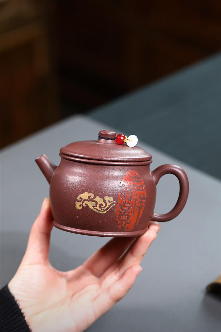 220cc原礦紫泥吉祥如意漢瓦泡茶壺POT9744