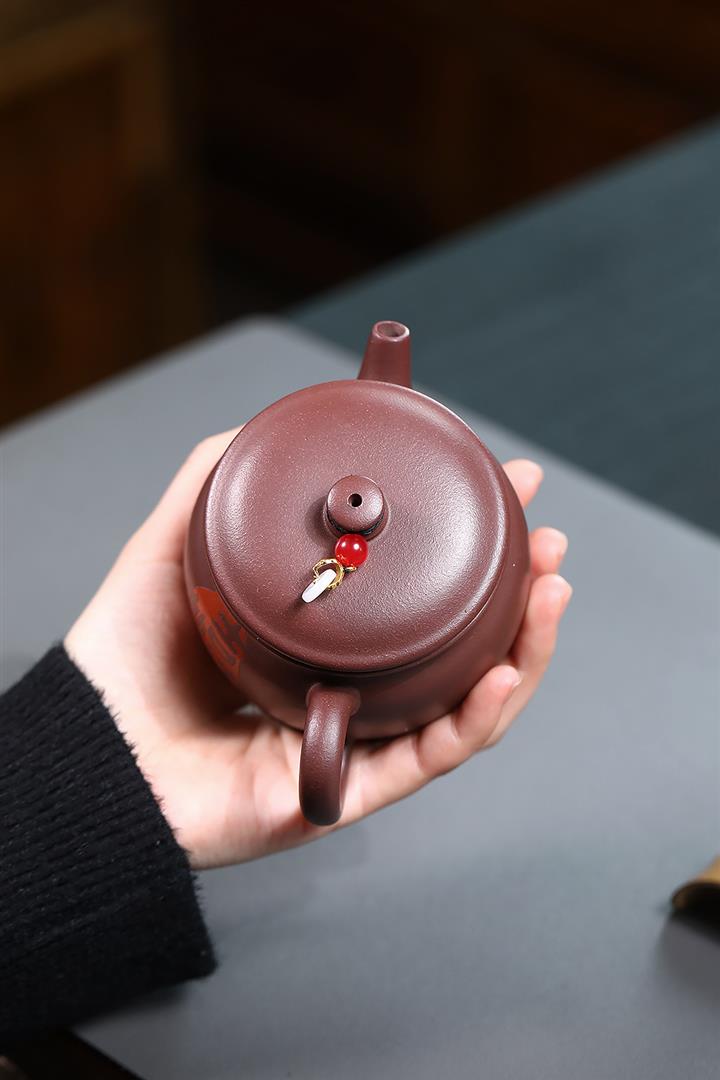 【作品介紹】此款壺形線條流暢,壺把,壺嘴,壺身壹氣呵成栩栩如生,是收藏把玩的好壺,泥料色澤古樸典雅,日久使用,漸露鋒芒,養成變化快,溫潤莊重,用其泡茶,使用的年代久,壺身就溫潤,泡出來的茶湯也就醇郁芳馨。