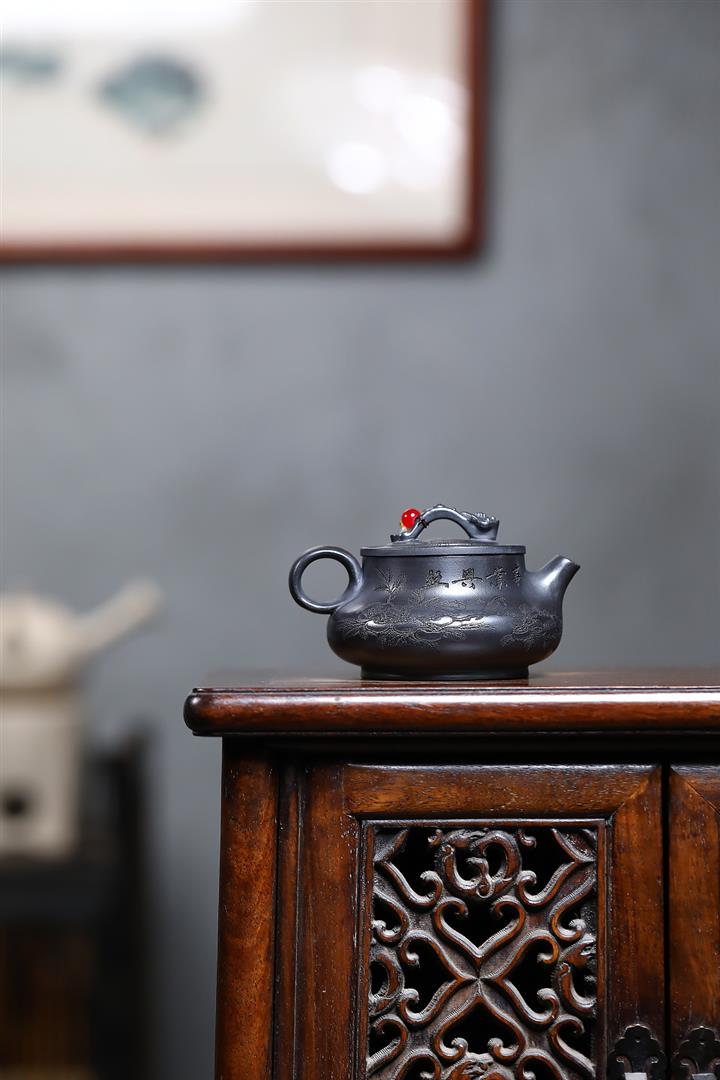【作品介紹】此款壺形線條流暢,壺把,壺嘴,壺身壹氣呵成栩栩如生,是收藏把玩的好壺,泥料色澤古樸典雅,日久使用,漸露鋒芒,養成變化快,溫潤莊重,用其泡茶,使用的年代久,壺身就溫潤,泡出來的茶湯也就醇郁芳馨。
