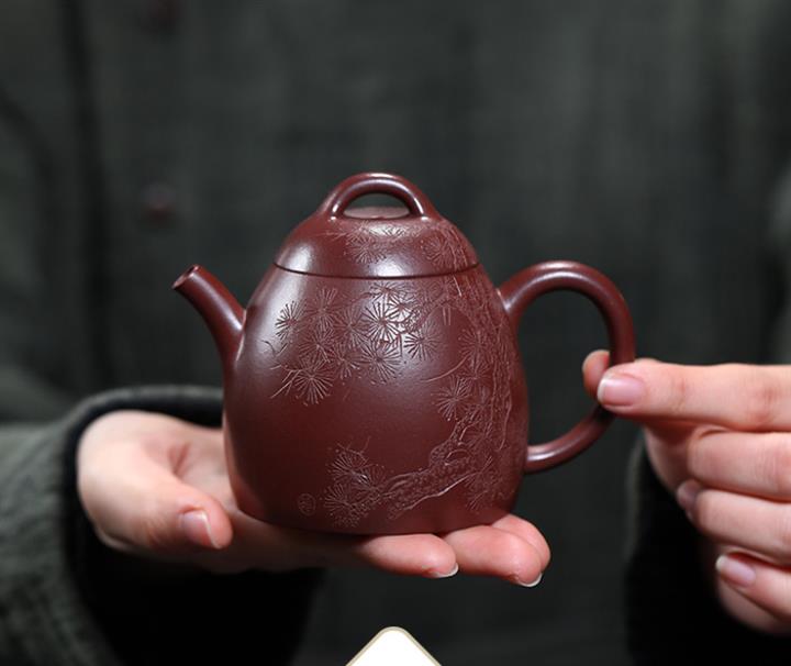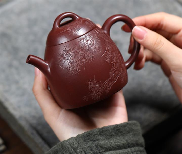 【泥料特點】砂土氣重,似淳實農民,日久使用,漸露鋒芒,養成變化,溫潤莊重。紫砂是壹種雙重氣孔結構的多孔性材質,氣孔微細,密度高。用紫砂壺沏茶,不失原味,且香不渙散,得茶之真香真味。紫砂使用越久,壺身色澤越發光亮照人,氣韻溫雅。紫砂壺長久使用器身會因撫摸擦拭,變得越發溫潤光澤。