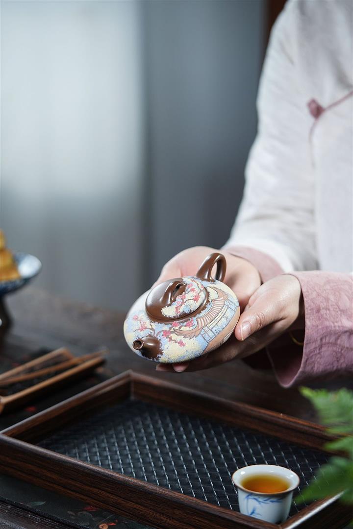 【泥料特點】砂土氣重,似淳實農民,日久使用,漸露鋒芒,養成變化,溫潤莊重。紫砂是壹種雙重氣孔結構的多孔性材質,氣孔微細,密度高。用紫砂壺沏茶,不失原味,且香不渙散,得茶之真香真味。紫砂使用越久,壺身色澤越發光亮照人,氣韻溫雅。紫砂壺長久使用器身會因撫摸擦拭,變得越發溫潤光澤。