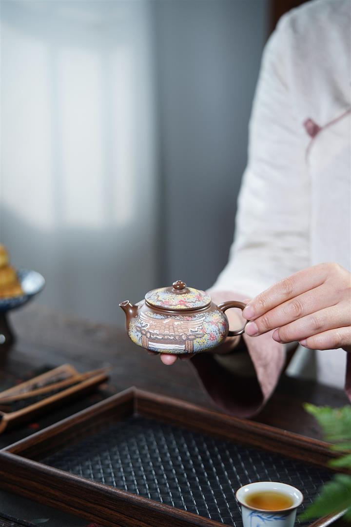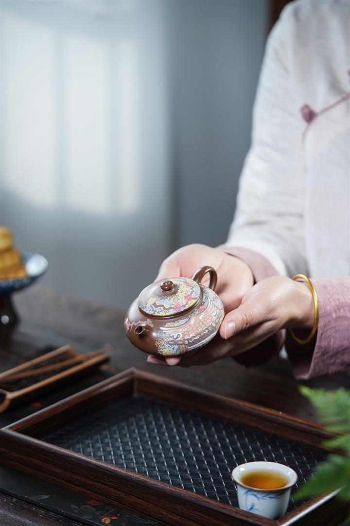 【泥料特點】砂土氣重,似淳實農民,日久使用,漸露鋒芒,養成變化,溫潤莊重。紫砂是壹種雙重氣孔結構的多孔性材質,氣孔微細,密度高。用紫砂壺沏茶,不失原味,且香不渙散,得茶之真香真味。紫砂使用越久,壺身色澤越發光亮照人,氣韻溫雅。紫砂壺長久使用器身會因撫摸擦拭,變得越發溫潤光澤。