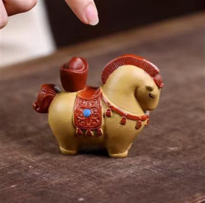 原礦紫砂馬上有錢元寶馬茶寵POT9825