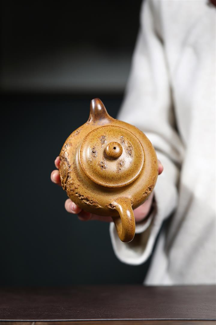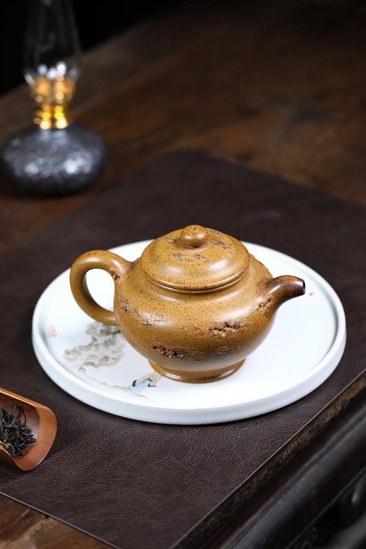 原礦玄鐵石黃琺瑯柱礎泡茶壺POT7852