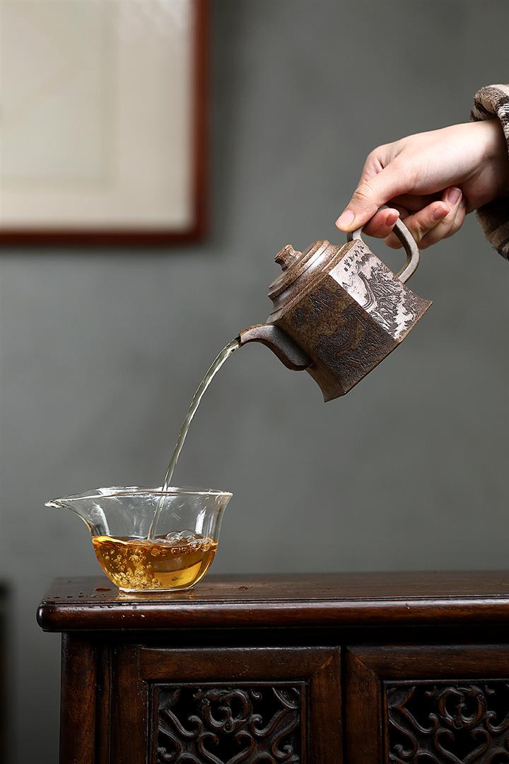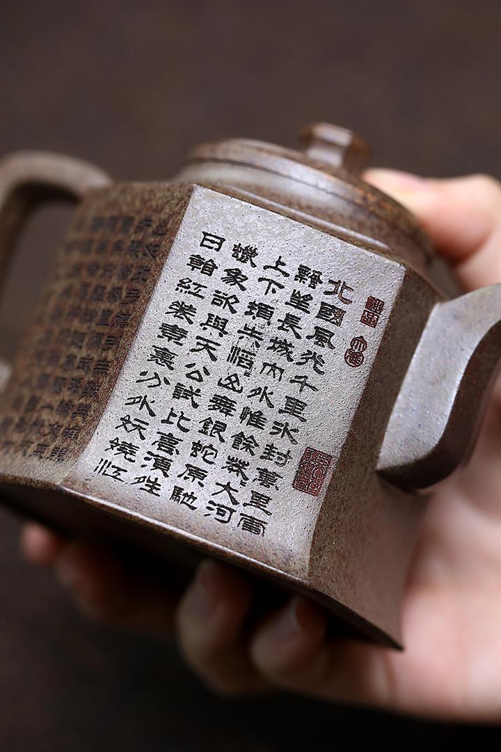 【泥料特點】砂土氣重,似淳實農民,日久使用,漸露鋒芒,養成變化,溫潤莊重。紫砂是壹種雙重氣孔結構的多孔性材質,氣孔微細,密度高。用紫砂壺沏茶,不失原味,且香不渙散,得茶之真香真味。紫砂使用越久,壺身色澤越發光亮照人,氣韻溫雅。紫砂壺長久使用器身會因撫摸擦拭,變得越發溫潤光澤。